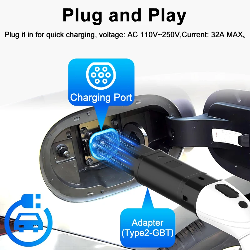 Adaptateur de Charge de Type 2 vers GBT EV, IEC 62196 vers GB, adaptateur de convertisseur de Charge de voiture chinoise Standard chinois 32A