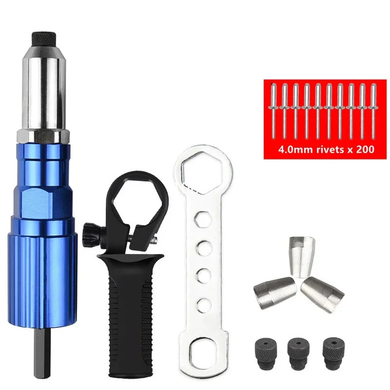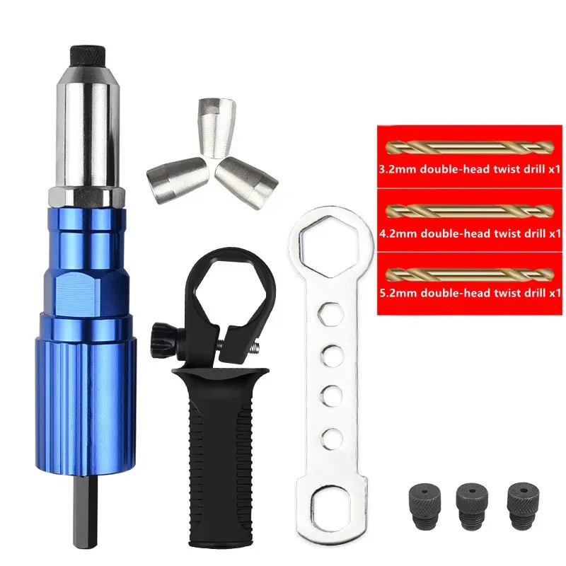Tête d'adaptateur de pistolet à rivets, 2.4mm-4.8mm, outil de rivetage sans fil, écrou d'insertion pour tirer l'outil de rivet adapté à la perceuse électrique