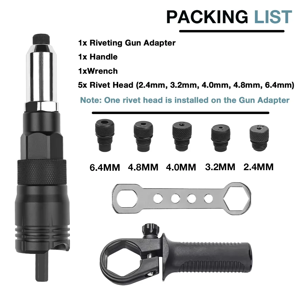 【Easy To Use】:The adapter tap screw is connected to the electric drill,and the electric rivet gun is quickly transformed.It is easy to install.