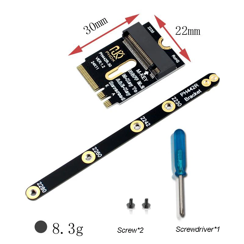2.L'adaptateur peut utiliser une interface M2 KEY A-E ordinaire pour convertir en M.Interface SSD 2 nvme, la carte a un rail de montage et un support, respectivement 22 * 30 mm, 22 * 42 mm, 22 * 60 mm, 22 * 80 mm, en fonction de la longueur de votre taille SSD, vous pouvez casser le positionnement
