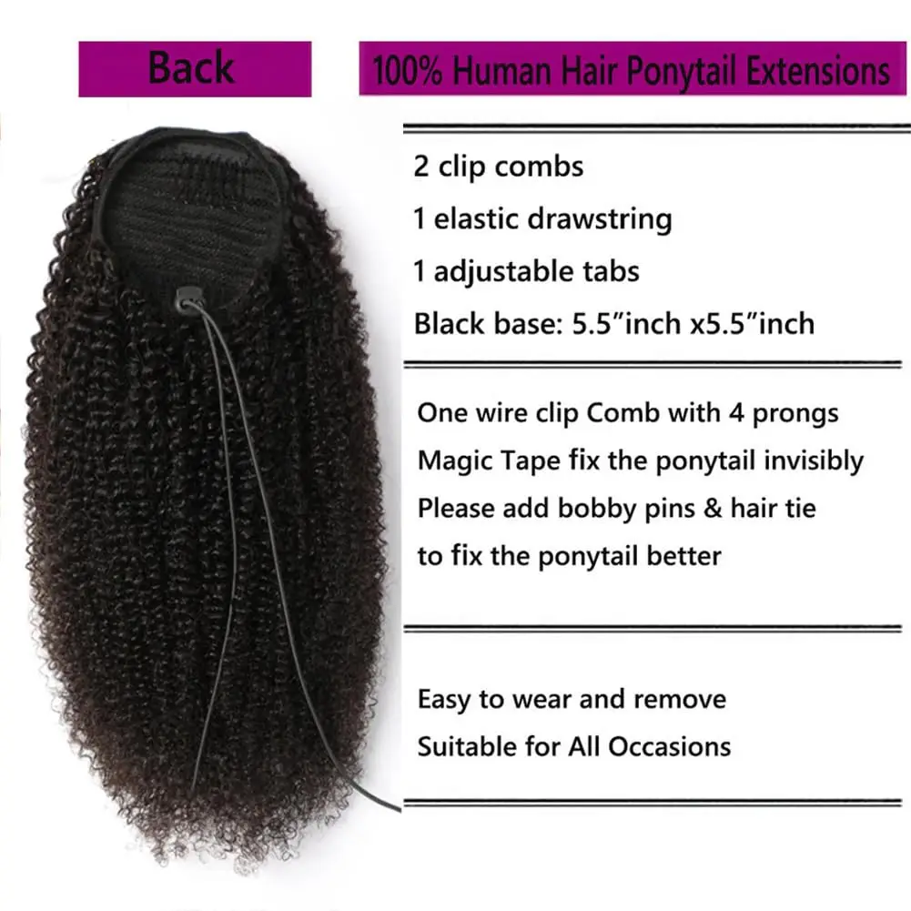 Afro crépus bouclés cheveux humains queue de cheval pince dans les Extensions 100% cheveux brésiliens cordon pince dans les Extensions de cheveux queue de cheval