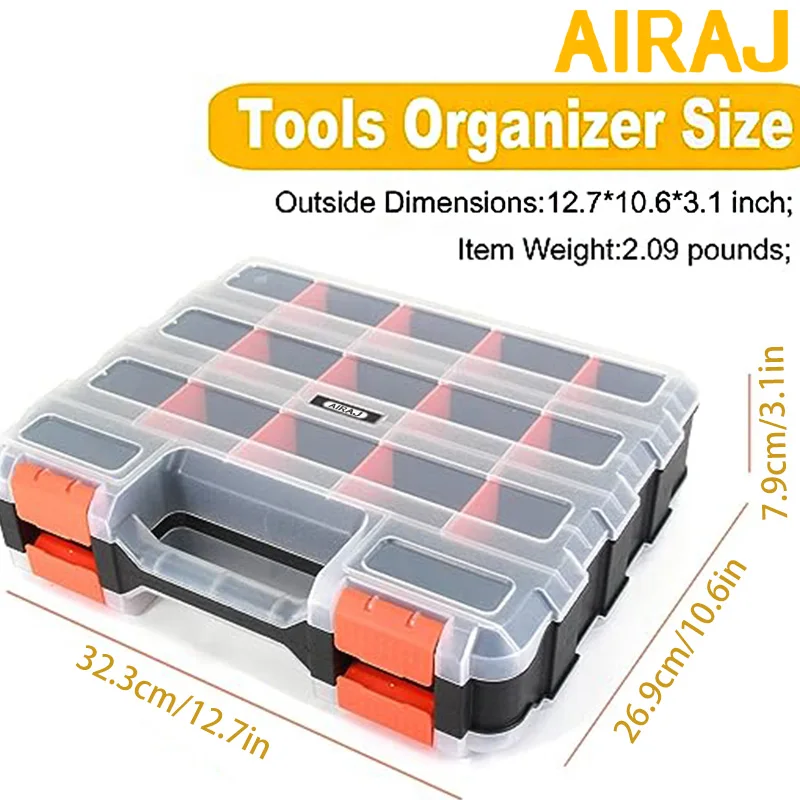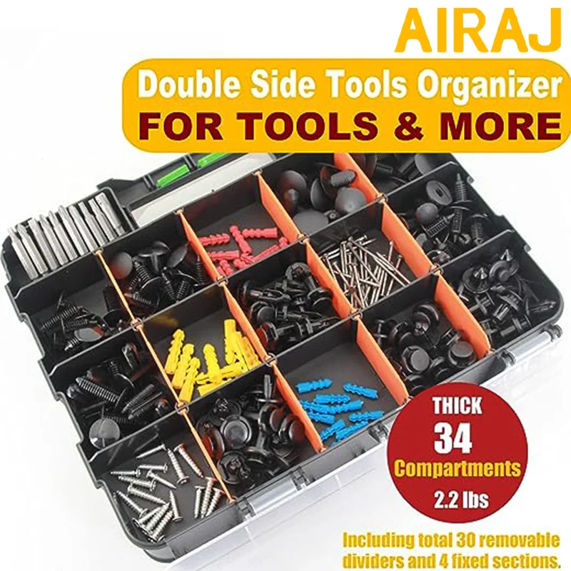 AIRAJ Organisateur de petites pièces, 34 compartiments Organisateur de pièces double face avec séparateurs amovibles pour matériel, vis, boulons, clous
