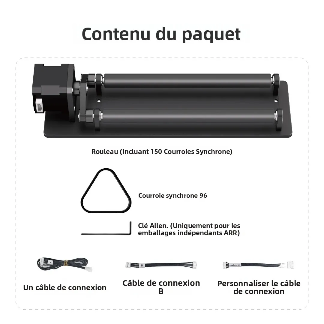 Connectez simplement l'ARR à votre graveur laser à l'aide du câble fourni et vous êtes prêt à commencer la gravure, sans qu'il soit nécessaire de l'assembler.