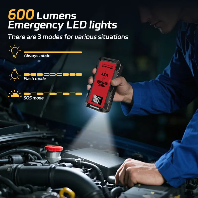 Alimentation de démarrage d'urgence pour Automobile, haute puissance, écran 8000mAh, marteau de sécurité, dispositif de démarrage de voiture, accessoires de batterie externe