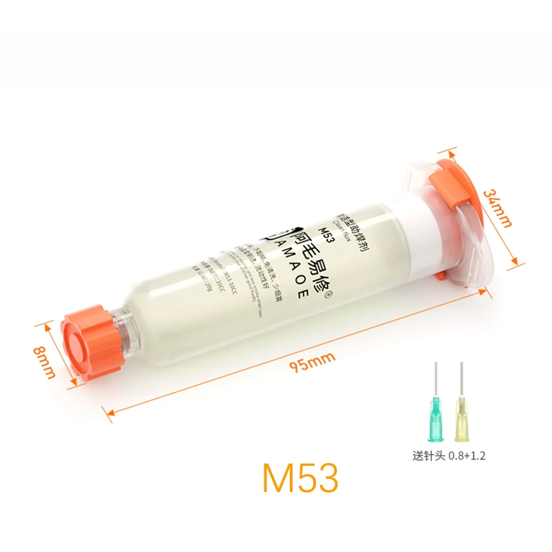 AMAOE – Flux de soudure M50/M53 Original, seringue 10CC, pâte à souder, flux de soudage avec 2 aiguilles pour téléphones portables, ordinateurs portables, CPU BGA, 1 pièce