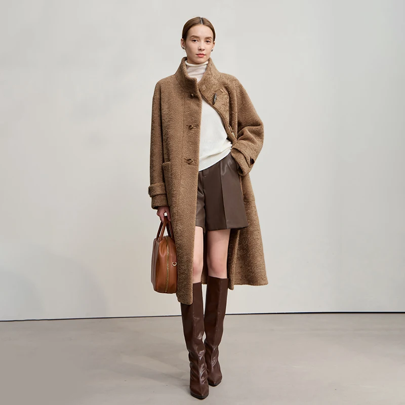 Amii manteau femme 2025 hiver nouveau ample Long col mi-haut manches longues manteau femmes droite élégant chaud vêtements d'extérieur 12554010