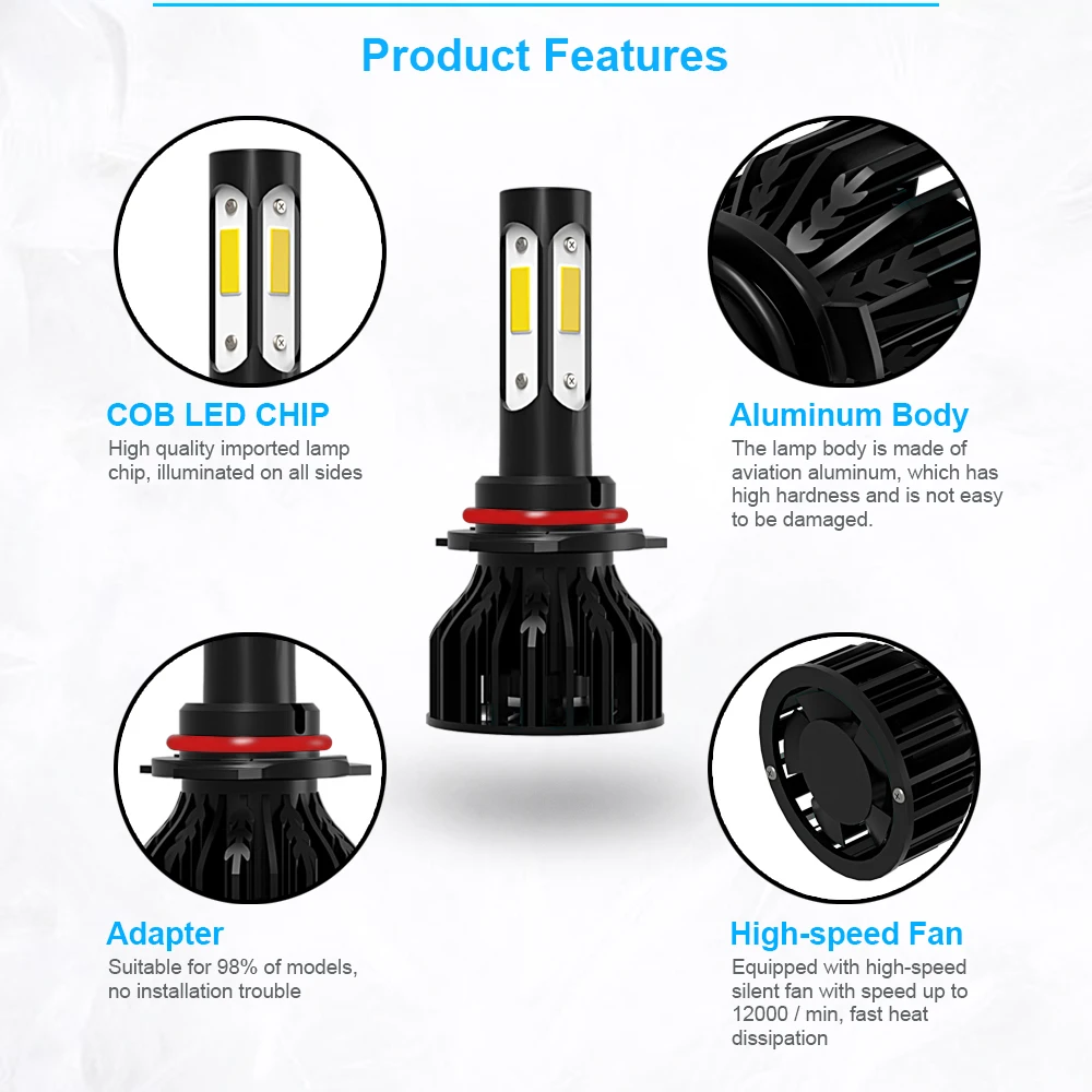 (1) Haute luminosité : la dernière puce LED blanc 6000K et bleu glacier 8000K ; La technologie avancée garantit des modèles de faisceaux parfaits sans aucun point noir.