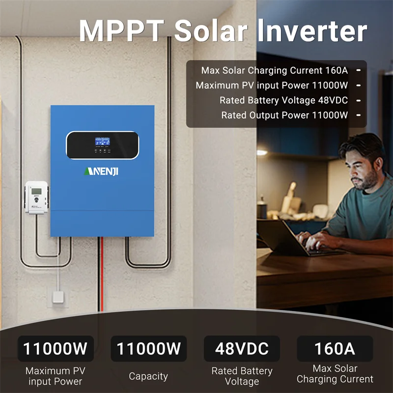 15. Deux entrées photovoltaïques.(Si vous avez besoin de deux côtés en parallèle, veuillez vous assurer du même numéro de panneaux solaires en série de chaque côté)