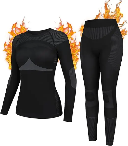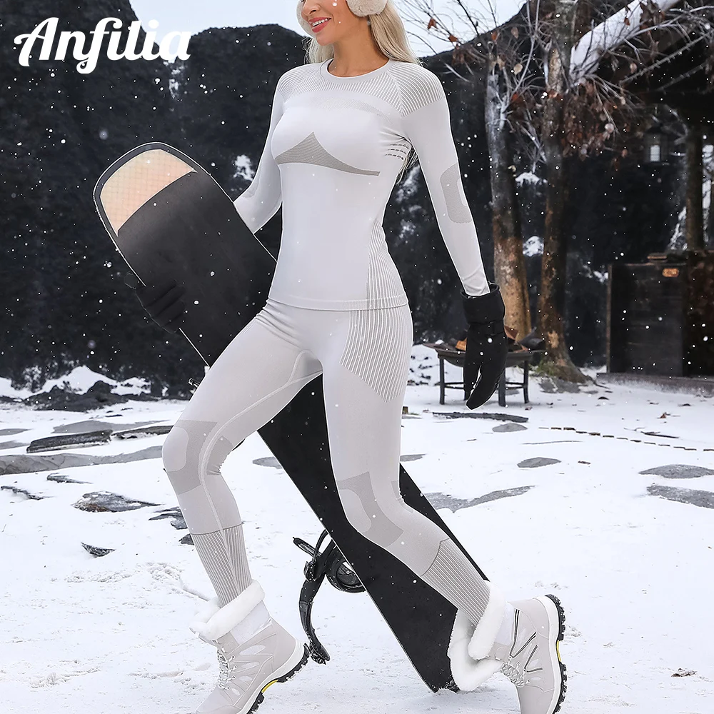 Anfilia femmes Ski sous-vêtements thermiques ensembles évacuant l'humidité et séchage rapide serré col rond sans couture tricoté couche de Base longs Johns
