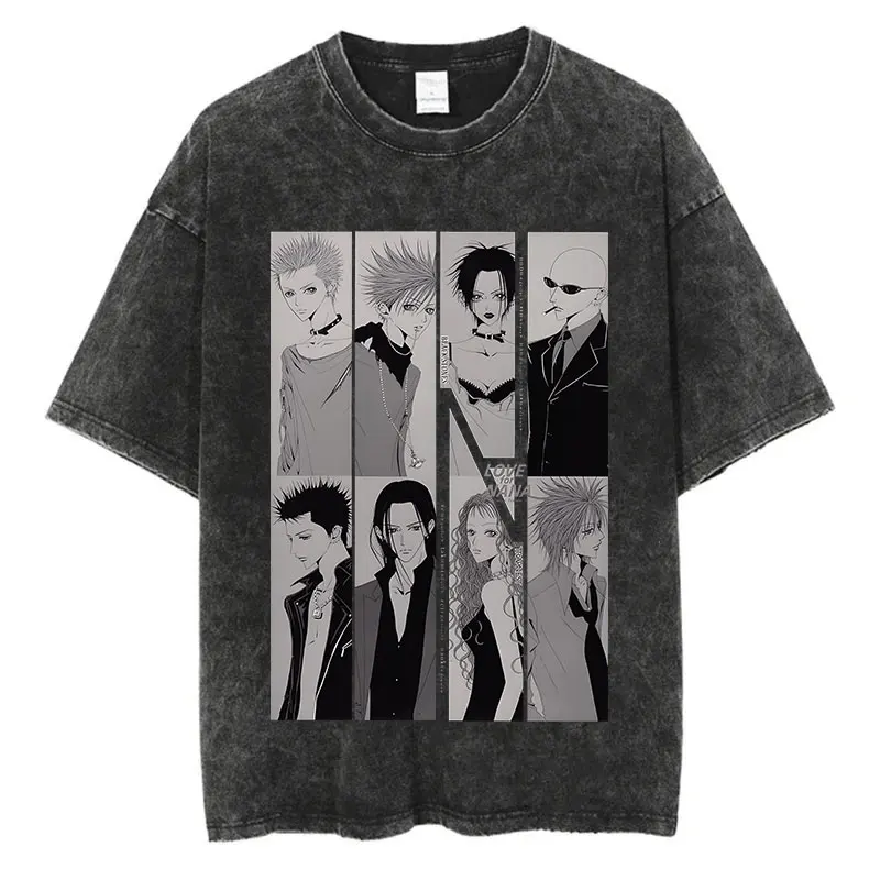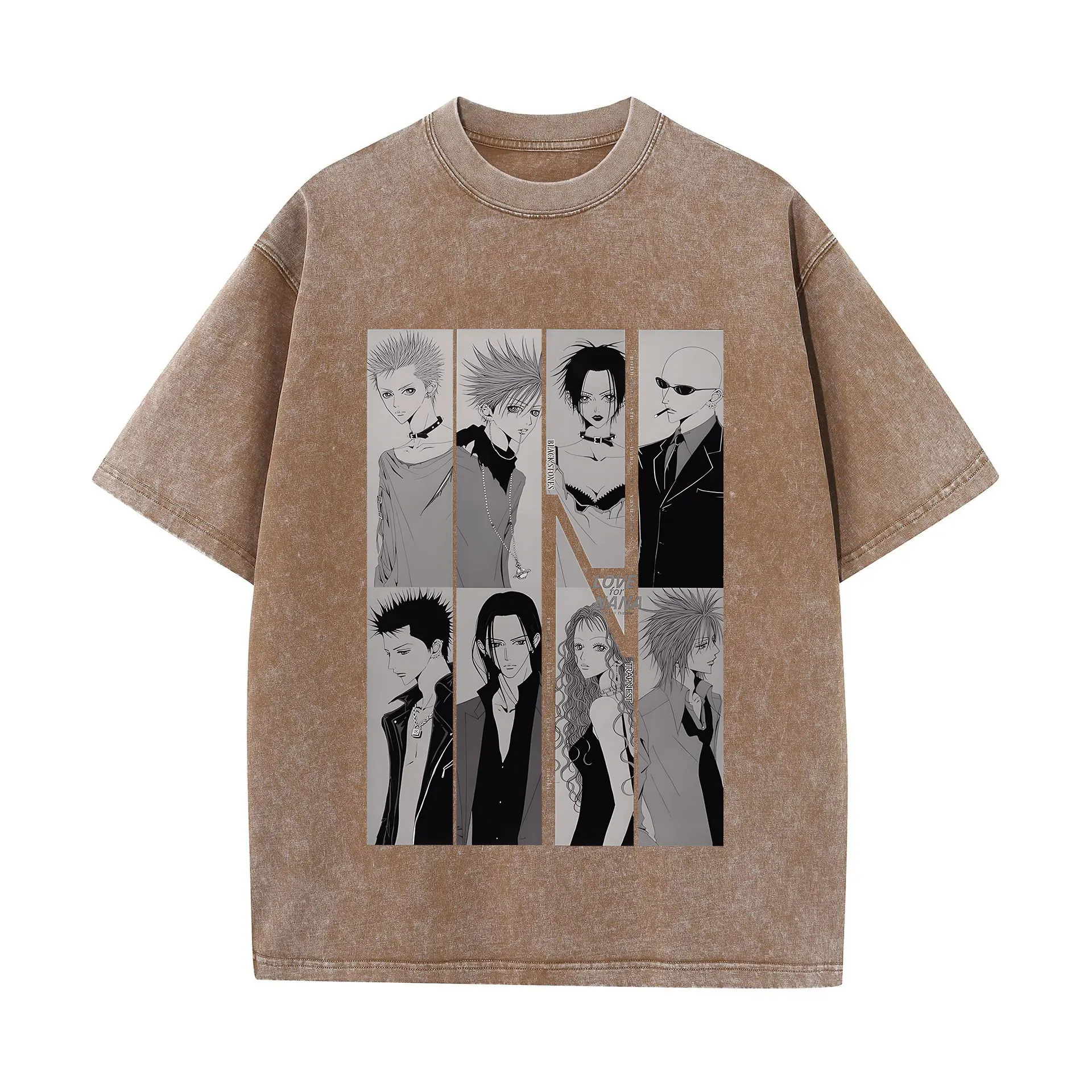 Anime japonais Nana Osaki imprimé Vintage lavé T-Shirt Harajuku Streetwear graphique T-Shirt été à manches courtes coton T-Shirt