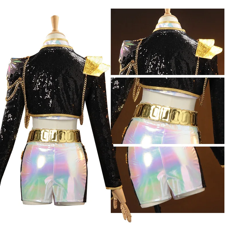 Anime Rumi Cosplay noir or réfléchissant Performance Costume Cosplay violet perruque femme noël Halloween fête uniforme