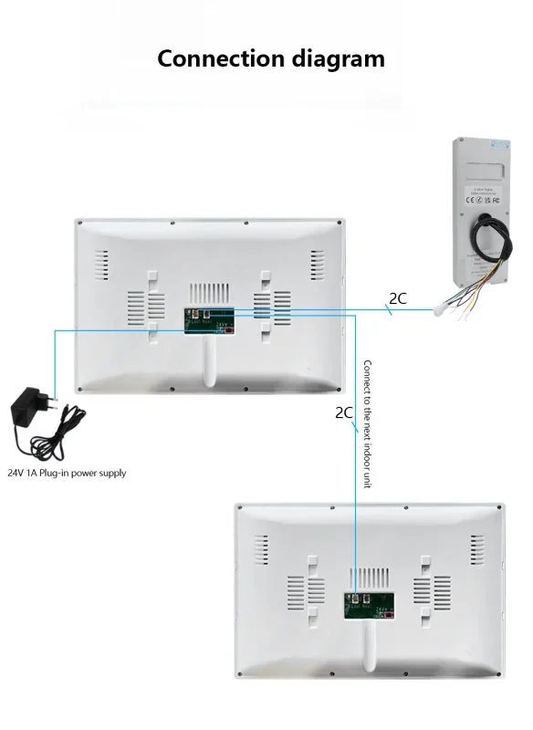 - 1 panneau d'interphone et 2 moniteurs partagent une alimentation