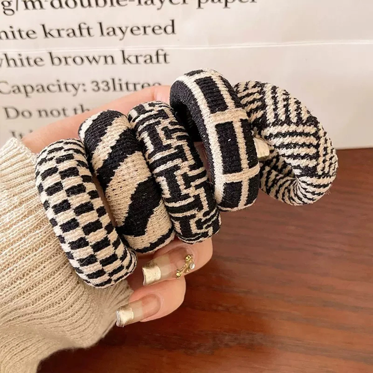 Anneau de cheveux à carreaux noirs et blancs, 5 pièces, simple et polyvalent, très extensible, sans trace