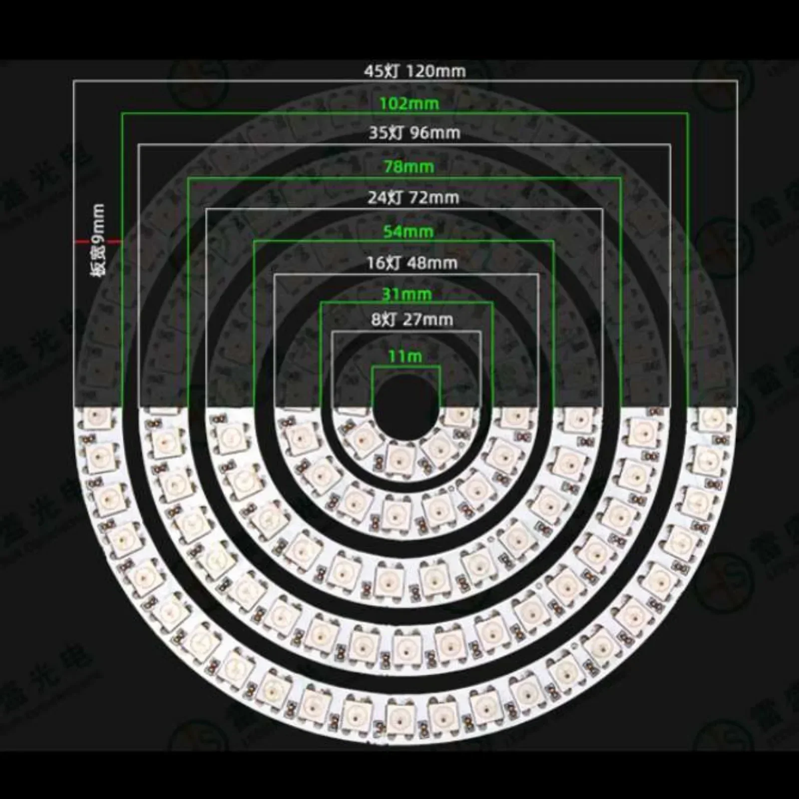 WS2812B 5050 RGB LED anneau 7/8/12/16/24/60 bits lampe lumineuse avec pilotes intégrés WS2812 pour Arduino Raspberry Pi