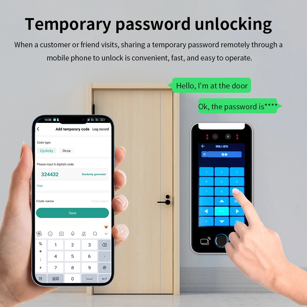 2.Un téléphone mobile peut gérer les appareils, notamment l'ajout et la suppression du personnel, l'invitation des visiteurs, l'autorisation de la gestion multi-appareils, l'ouverture de porte à distance, l'ouverture de porte à code QR et l'ouverture de porte par mot de passe temporaire.