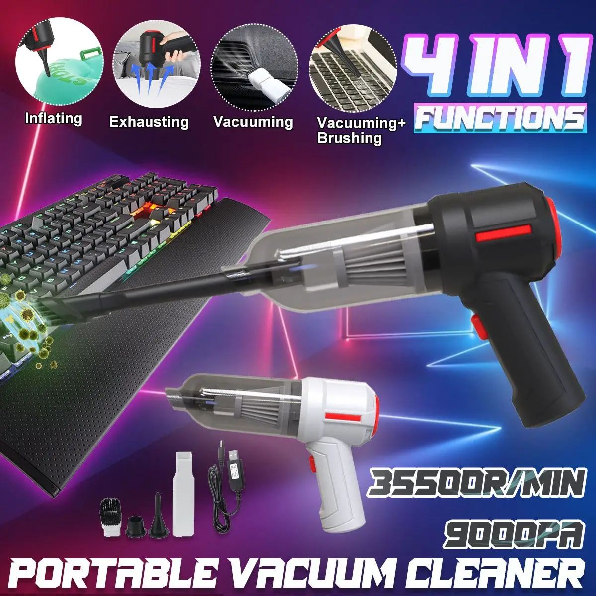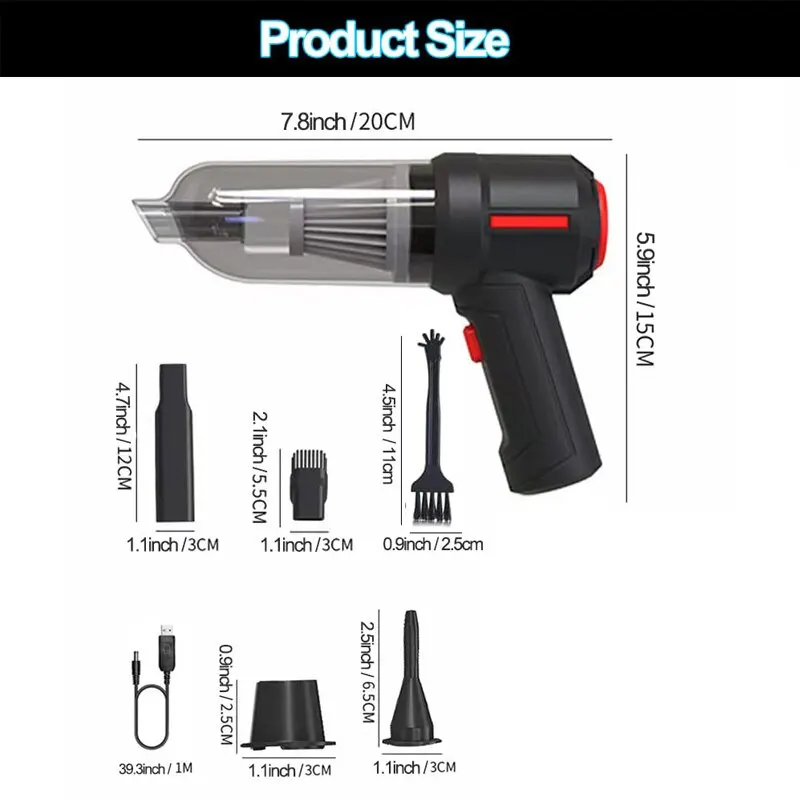 Avec différentes buses d'aspiration pour répondre à divers besoins de nettoyage, buse d'aspiration longue et plate/buse d'aspiration à brosse/buse d'aspiration/buse de gonflage.