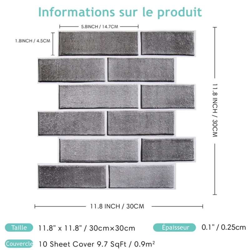 Les carreaux de brique gris 3D Commomy se décollent et se collent pour créer un mur d'accent qui ne sera pas démodé