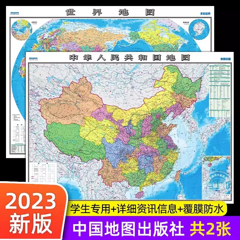 Autocollants muraux carte de la Chine et carte du monde, nouvelle édition pour les étudiants en 2023, grande taille et gérer la confrontation, ensemble de 2 pièces