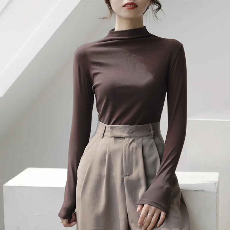 Automne à manches longues col roulé hauts mince tricoté fond t-shirt mode coréenne pull Harajuku pull femmes vêtements pull