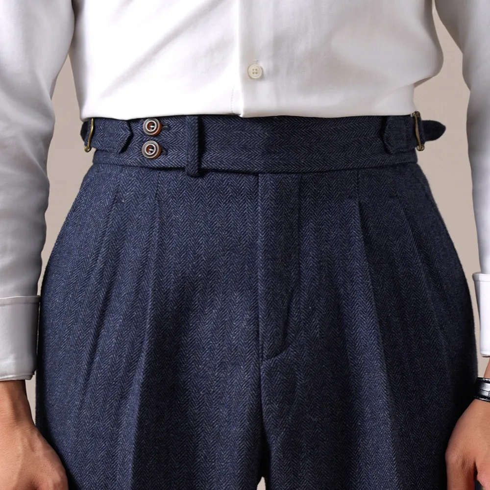 Automne chevrons robe pantalon pour hommes Naples hommes laine mélange taille haute Social décontracté polyvalent pantalons longs bureau pantalon hommes