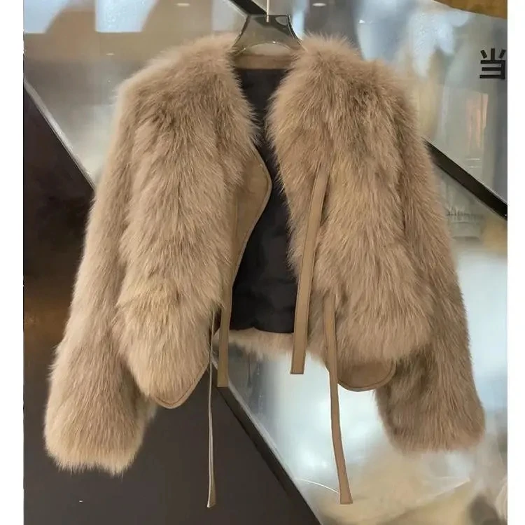 Automne hiver femmes Imitation manteau de fourrure de renard 2025 nouvelle lumière de luxe à lacets femmes manteau de fourrure haut femmes lâche mode veste de fourrure