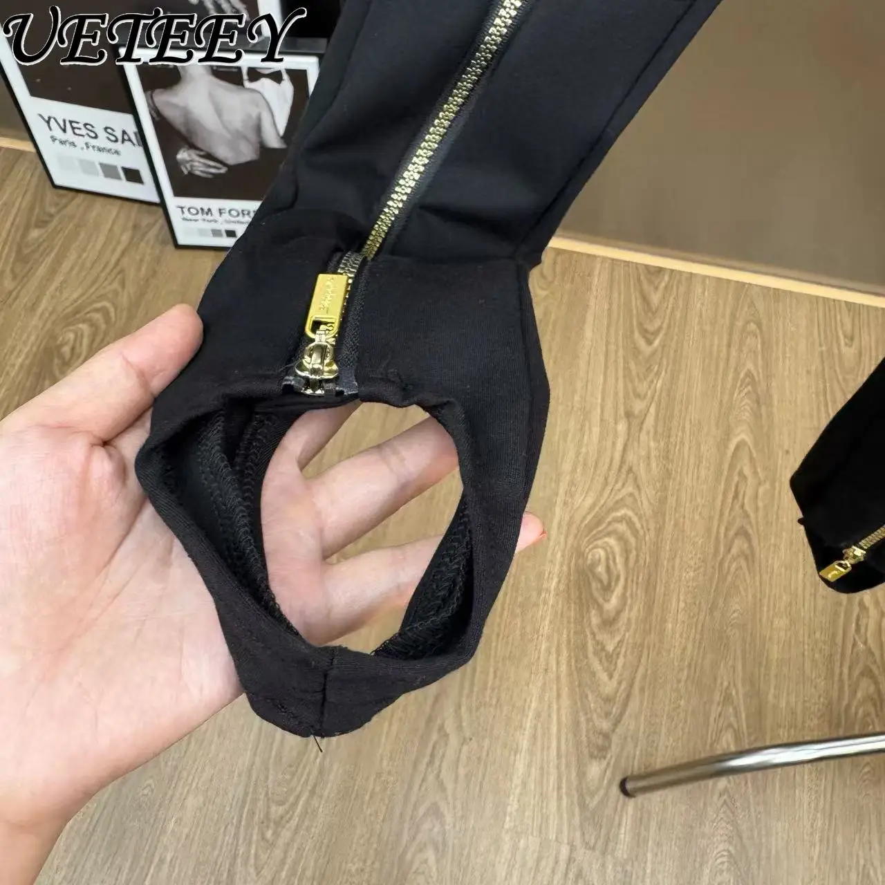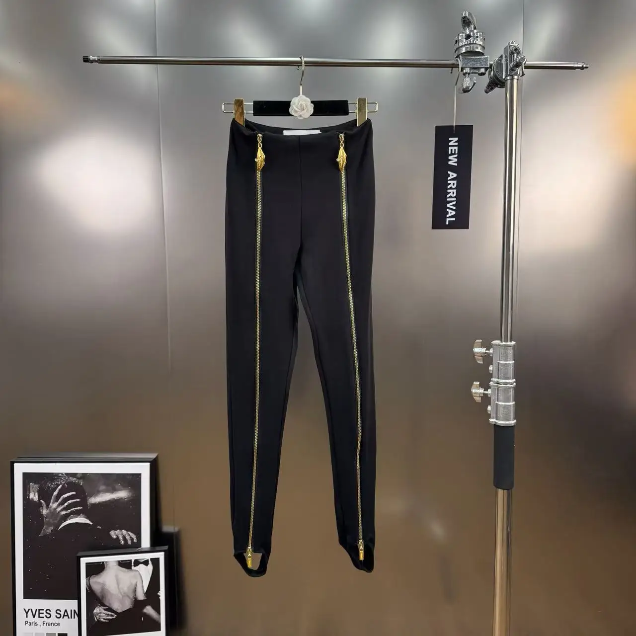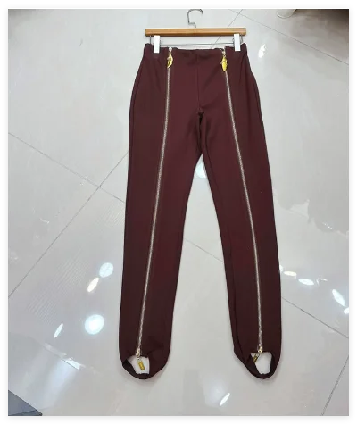 Automne hiver nouveau taille haute minceur longue fermeture éclair conception pantalon ajusté Unique Chic haut de gamme sensation noir polyvalent Leggings
