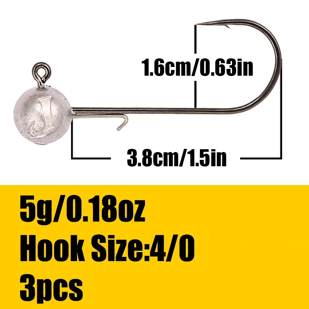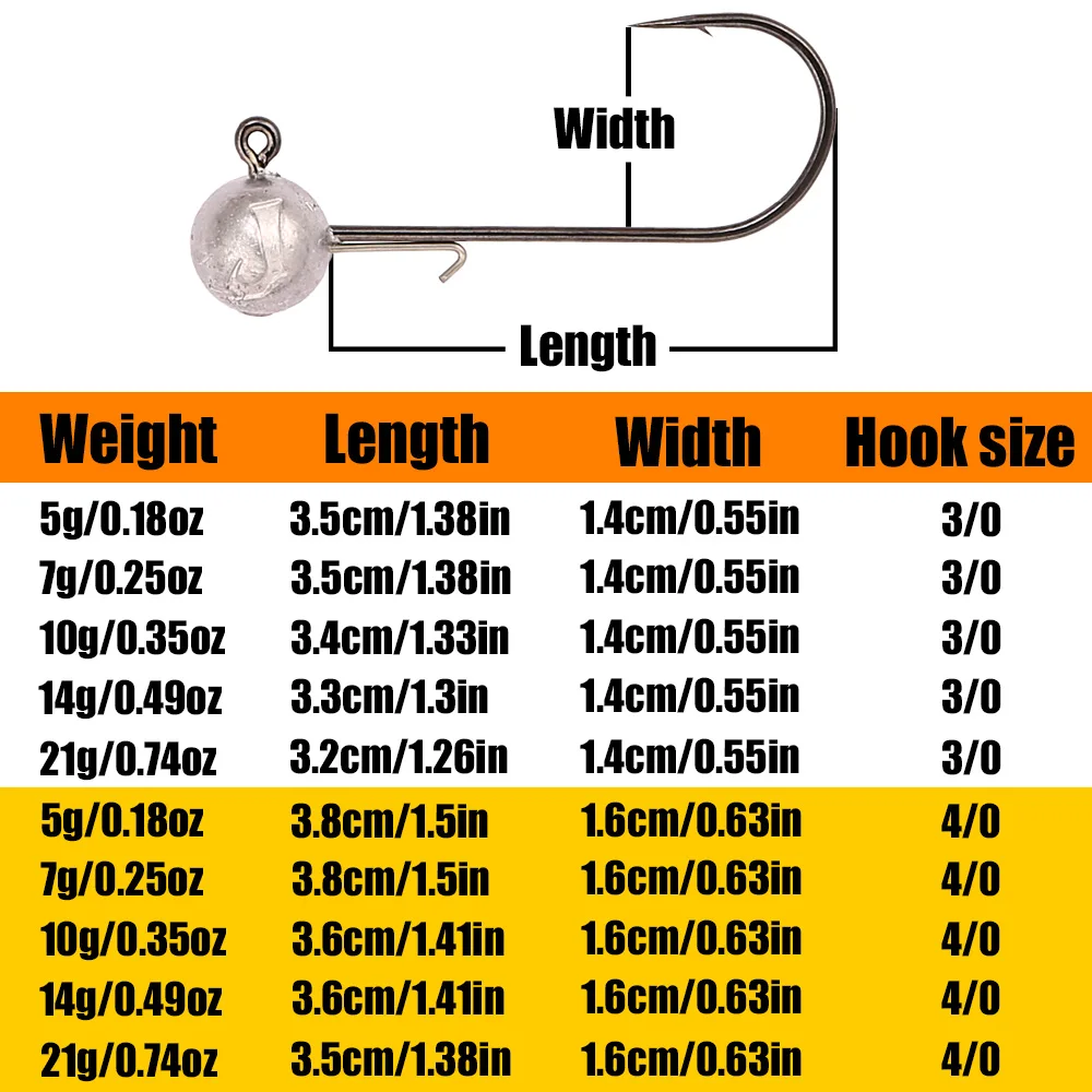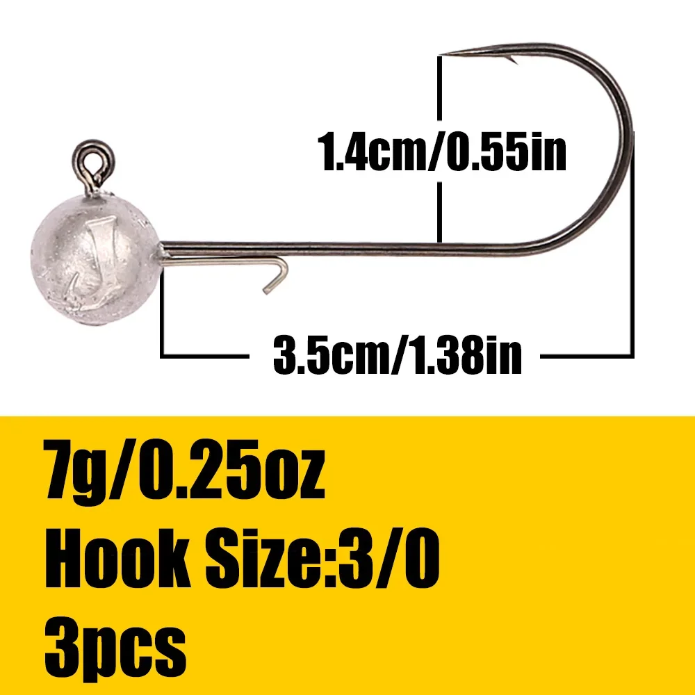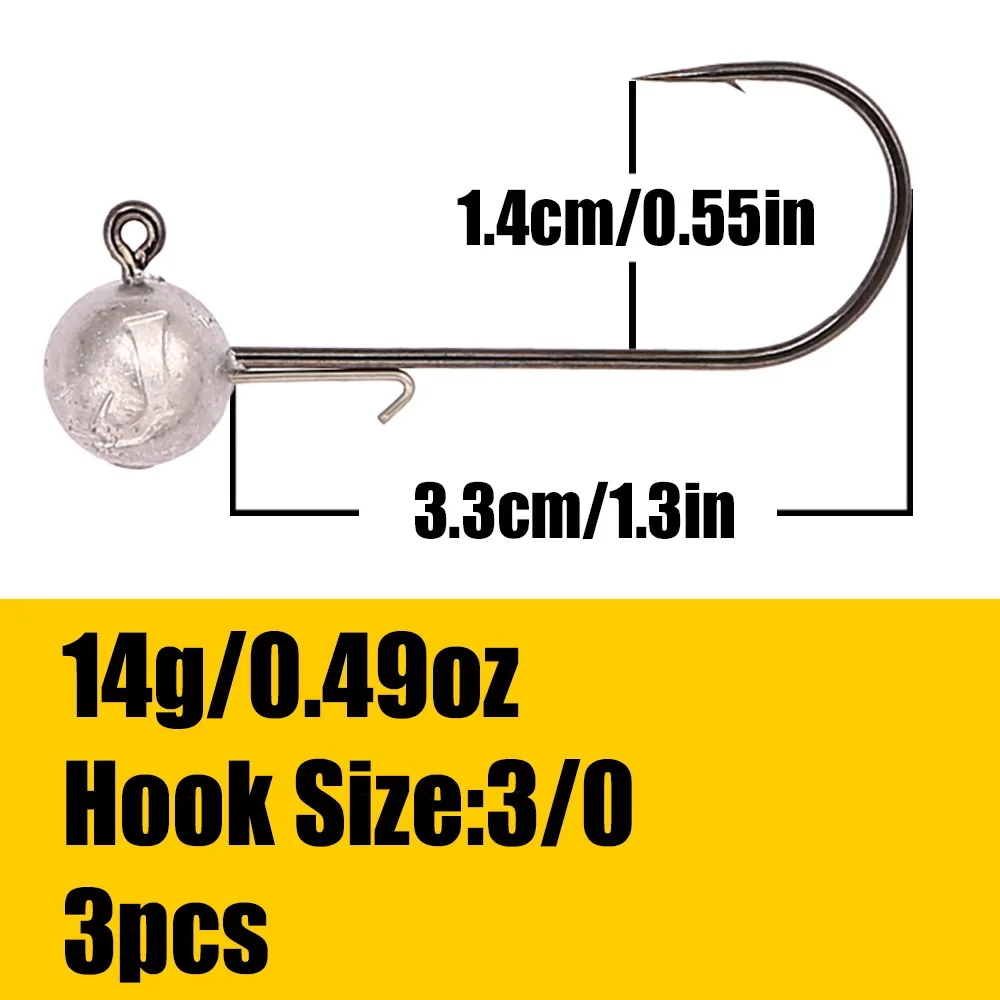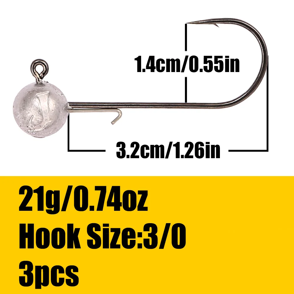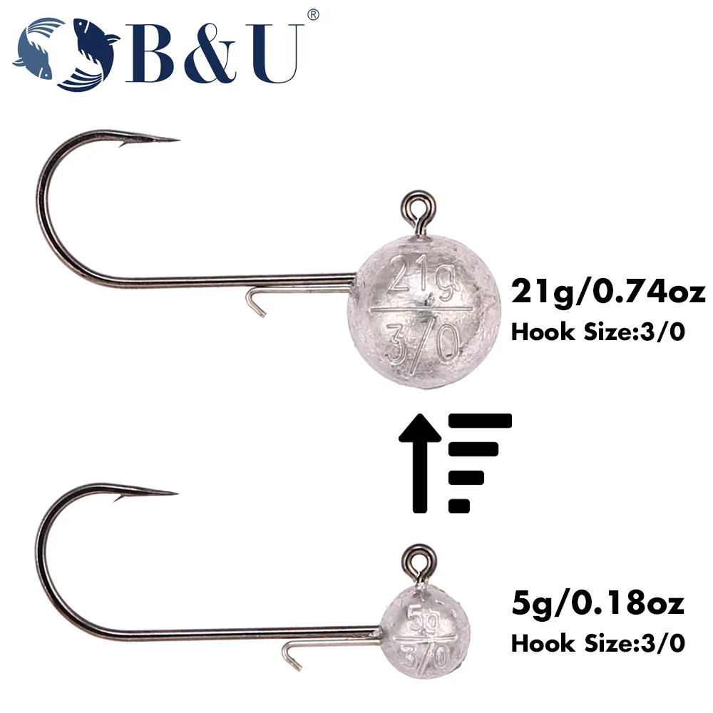 B & U 3/0 4/0 crochets à tête plomb haute résistance pour leurres souples, 5/7/10/14/21g crochets de pêche d'eau douce/eau salée pour bar, brochet