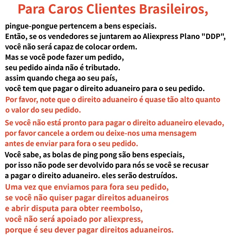 En raison de la nouvelle politique personnalisée, veuillez NE PAS PAS PLACER PLUS DE 200 BALLES EN 1 COMMANDE, car nous ne pouvons expédier que 200 boules dans 1 colis et les commandes brésiliennes ne sont pas autorisées à être divisées pour l'expédition.