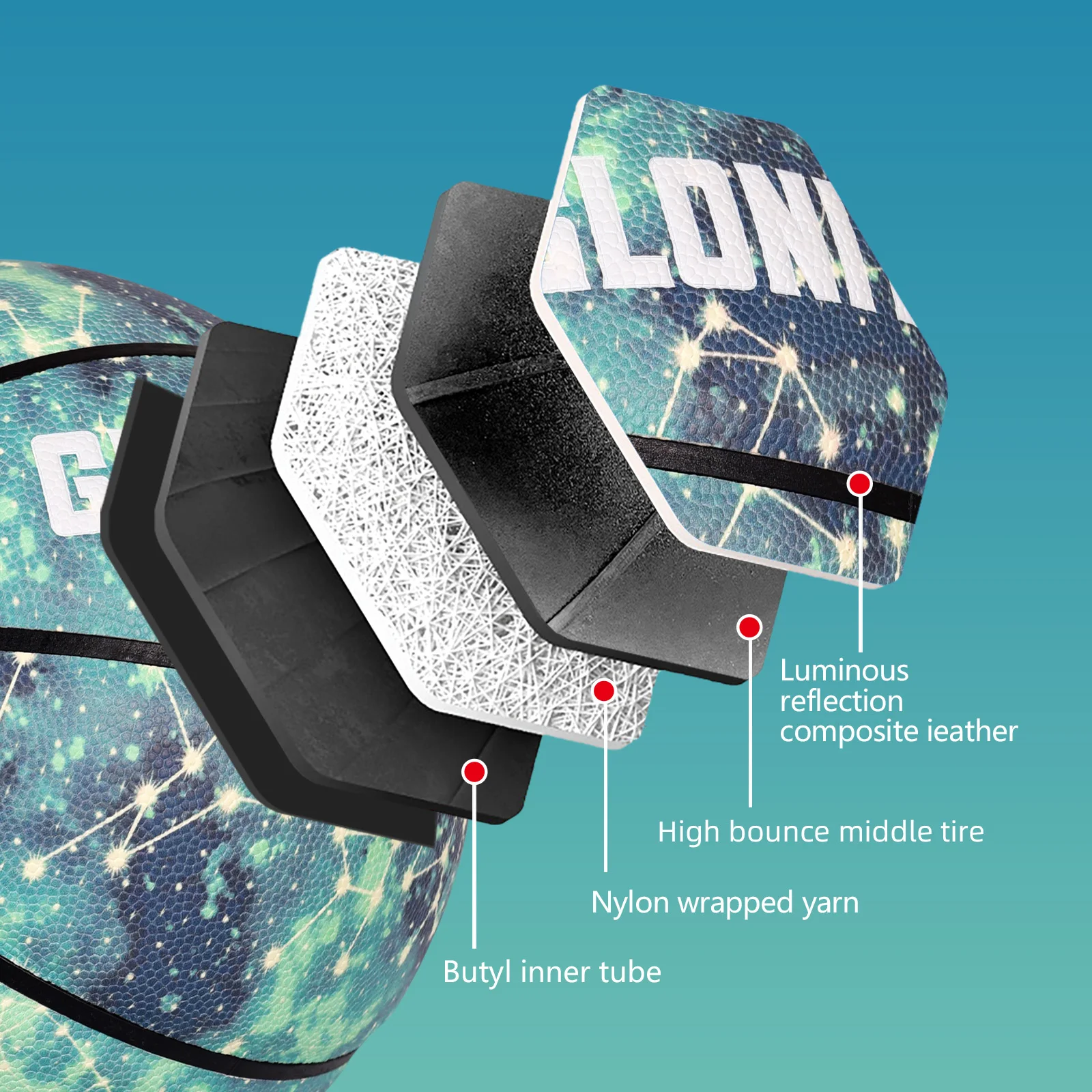 Ballon de basket-ball lumineux en cuir PU, Streetball pour jeunes adultes, jeu de nuit intérieur et extérieur, ballon d'entraînement de basket-ball vert