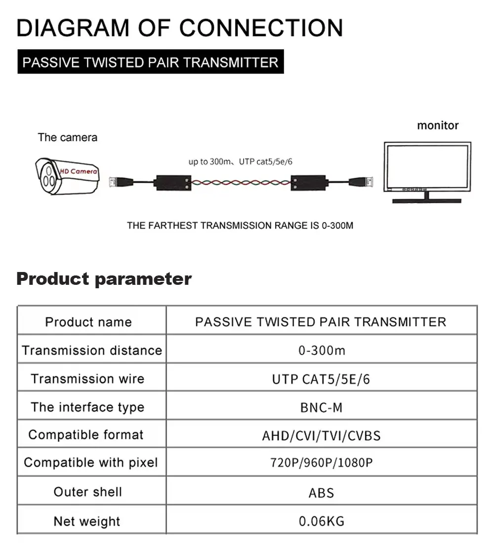 2 paires * émetteur-récepteur Balun vidéo pour caméra de sécurité CCTV
