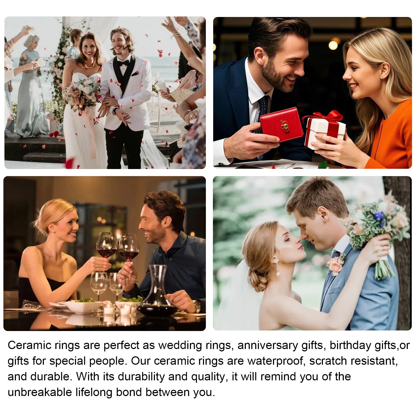 Nos bagues en céramique sont un remplacement idéal pour les bijoux traditionnels en métal précieux car elles ont l'air à la mode, se portent plus confortablement et sont abordables. De plus, nos bagues à la mode sont d'excellents cadeaux pour les mariages, les fiançailles, les anniversaires, les fêtes, les anniversaires, la Saint-Valentin, Thanksgiving., et Noël pour les hommes et les femmes.