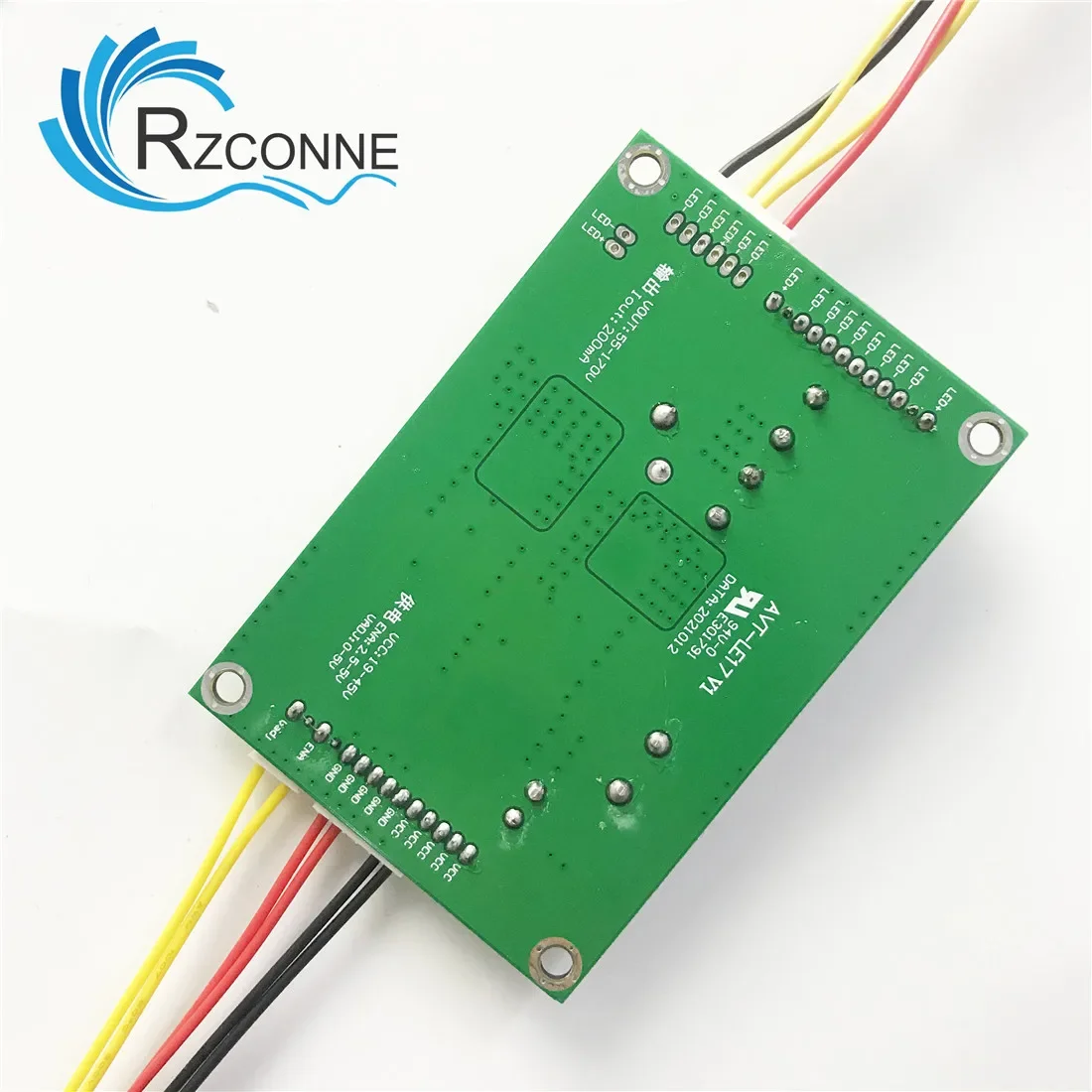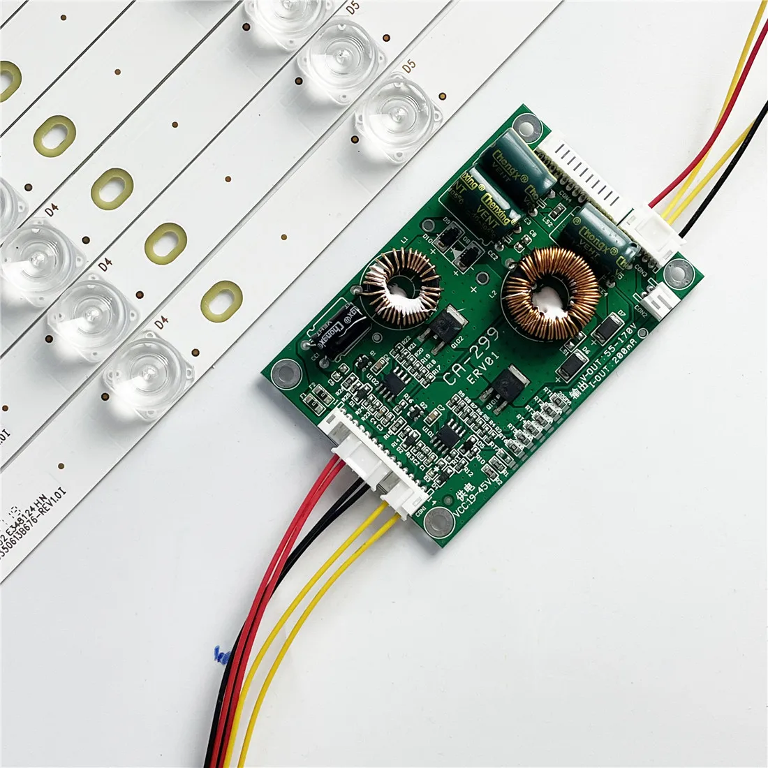Spécifications de la carte pilote : Utilisée pour : téléviseurs LED 26 à 55 pouces Tension d'entrée : 19-45 V Tension de sortie : 55-170 V Courant de sortie : 10 mA-1000 mA (réglable) Dimensions : 85 x 58 mm