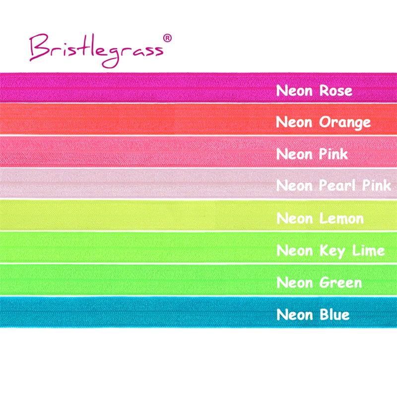BRISTLEGRASS 2 5 10 Yard 5/8 "15mm Néon Brillant Replier lastiques FOE Spandex Satin Bande Bande Cheveux Cravate Bandeau Robe Couture Garniture
