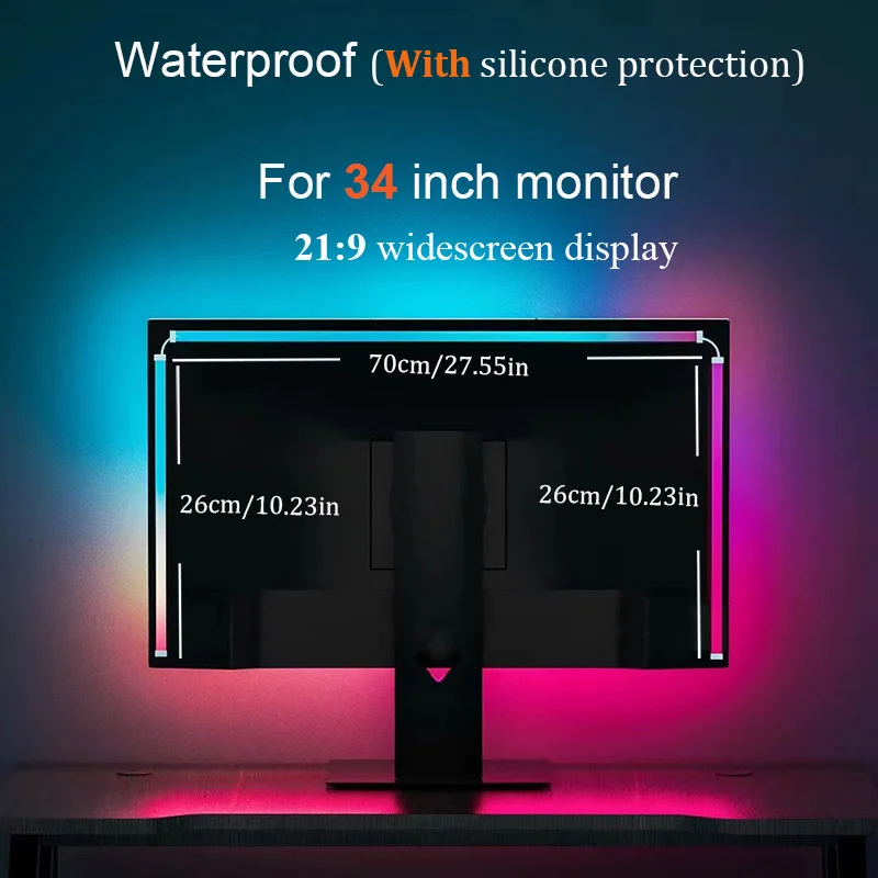 Conçue pour s'adapter à différentes tailles de moniteur, cette bande LED flexible offre des solutions d'éclairage adaptables pour les configurations de jeu et de bureau.