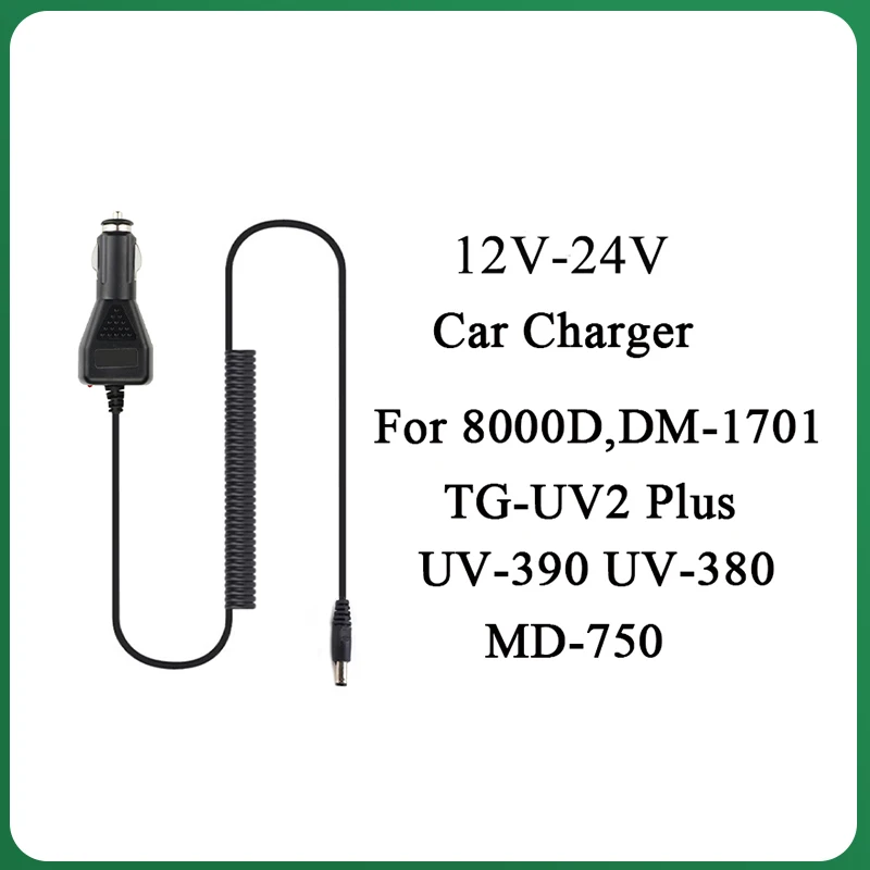 Le chargeur de voiture 12 V-24 V convient pour TYT TH-UV8000D, UV-390, UV-380, MD-750, UV-88 TYT UV-98 Quansheng TG-UV2 Plus, TH-350 Baofeng DM-1701, DM-1702