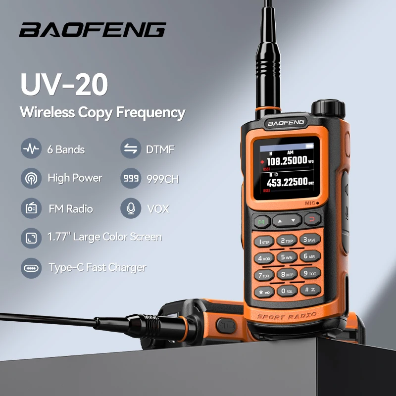 Baofeng UV-20 talkie-walkie pleine bande AM FM fréquence de copie sans fil type-c 999CH VHF UHF longue portée Ham Radio 2 voies UV-G30 Pro V1