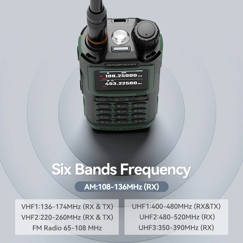 Radio FM 76-108 MHz ; Bande de fréquence aviation AM : 108-136 MHz (RX)