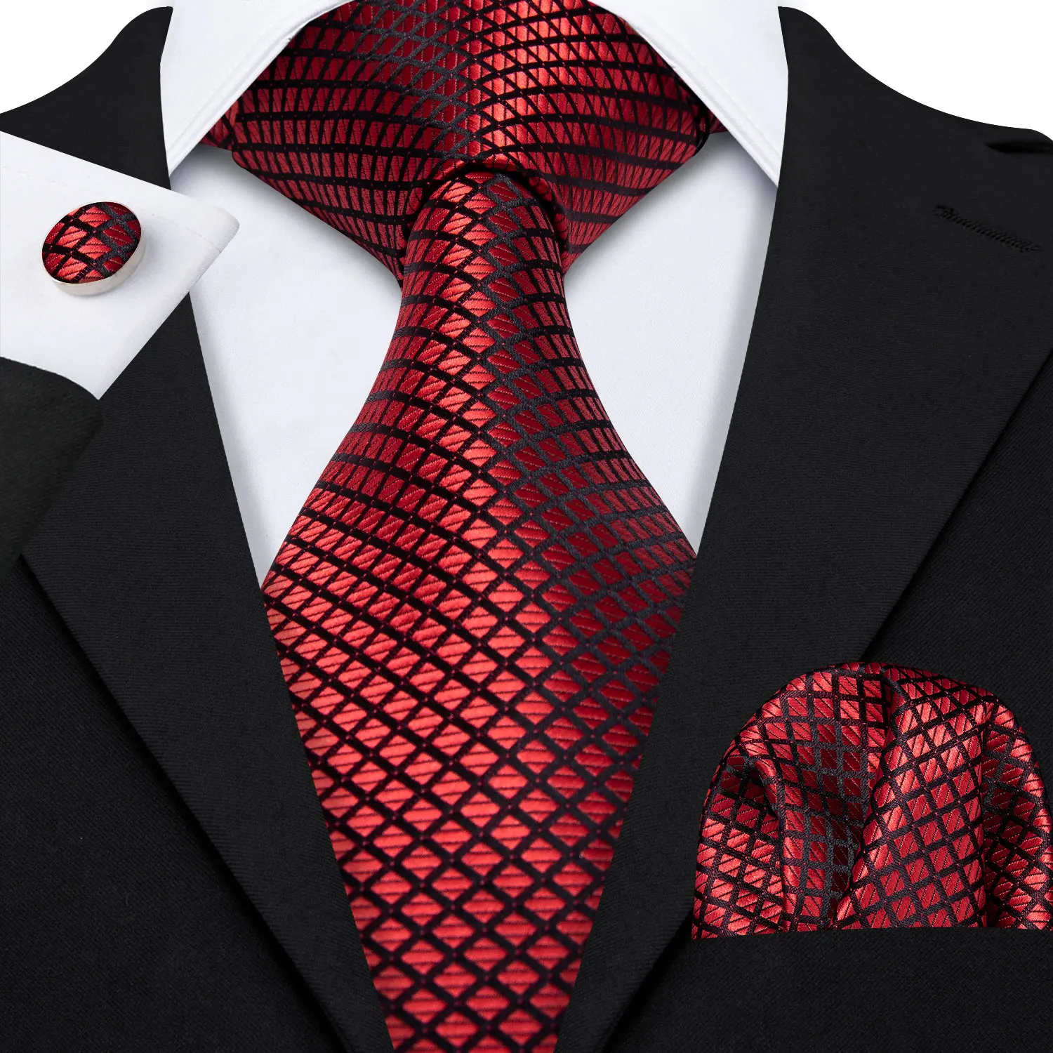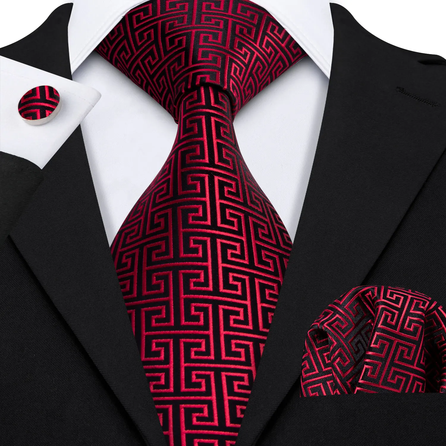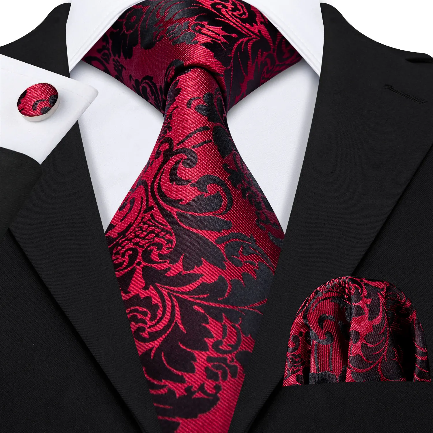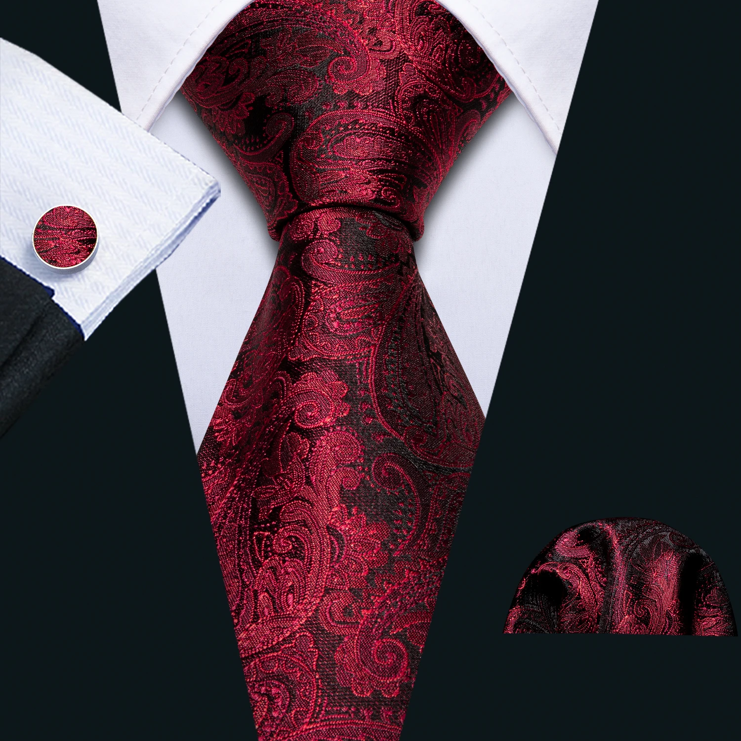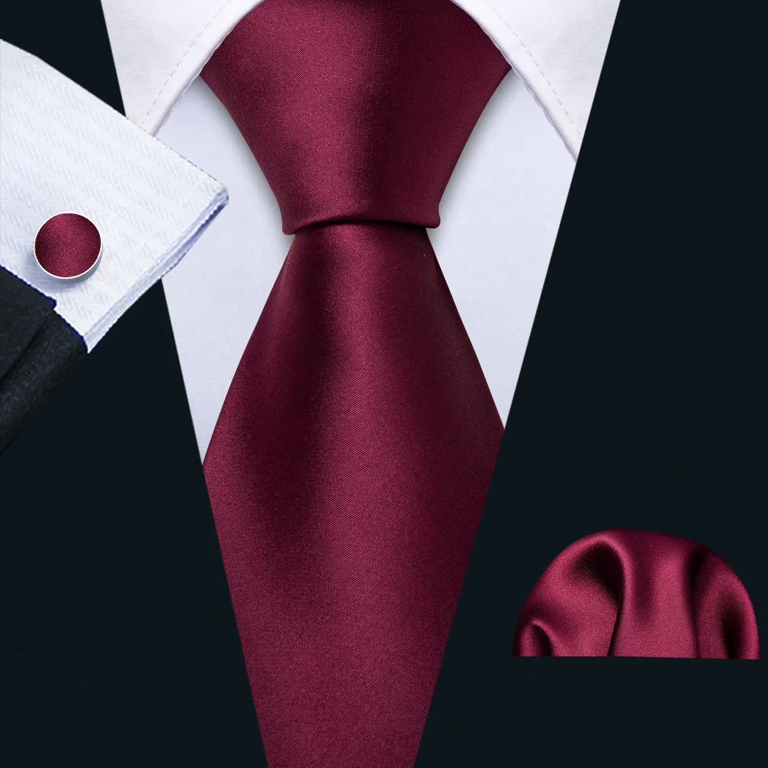 Barry.Wang rouge marron bordeaux Rose soie hommes cravate poche carré boutons de manchette ensemble Jacquard cravate pour homme mariage fête d'affaires