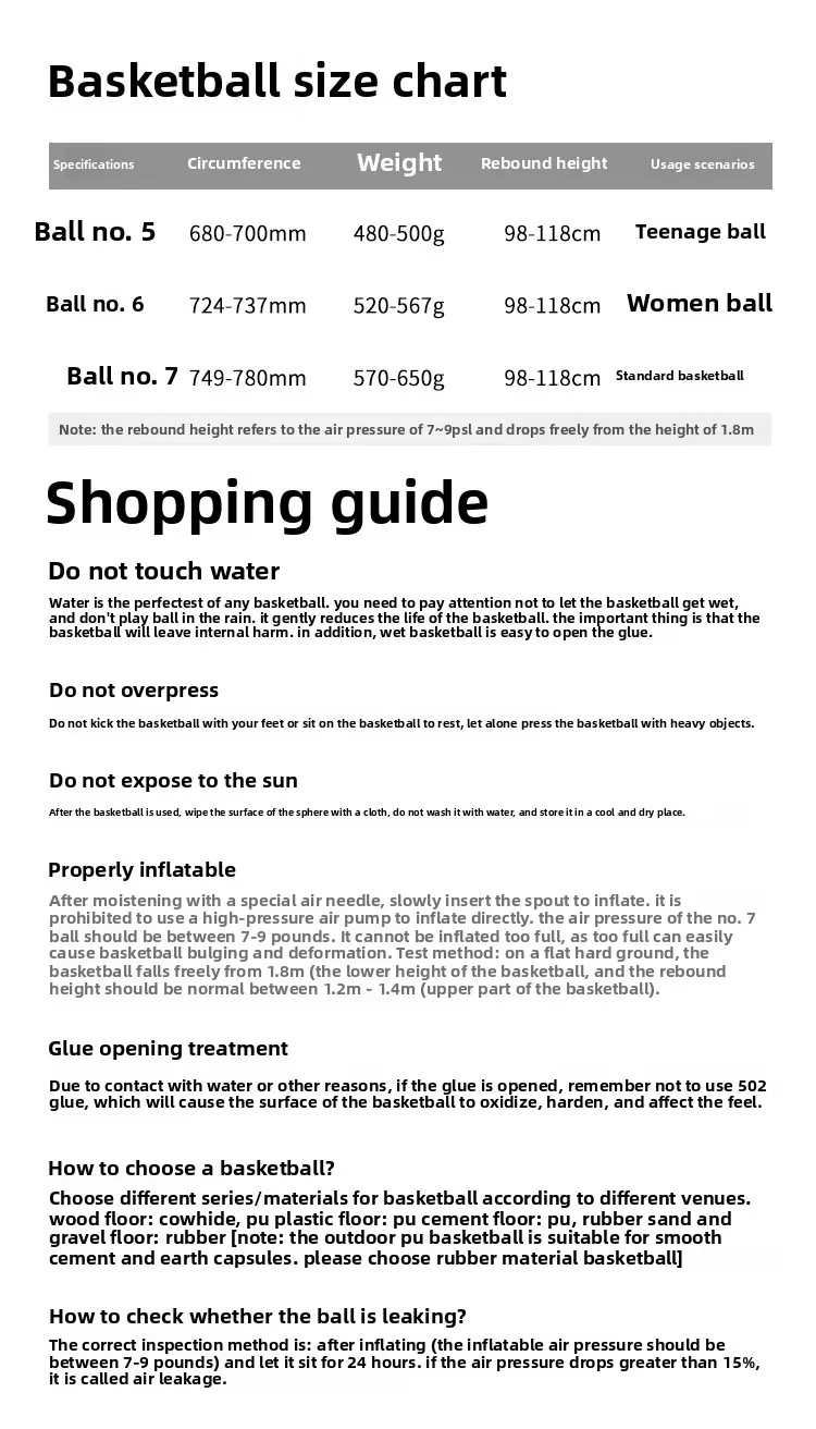 Remarque : avant de gonfler votre ballon de basket, veuillez mettre un peu d'huile sur votre aiguille pour éviter les fuites d'air. Le ballon de basket de notre boutique est gonflé ou non en fonction des douanes locales et des politiques aériennes.
