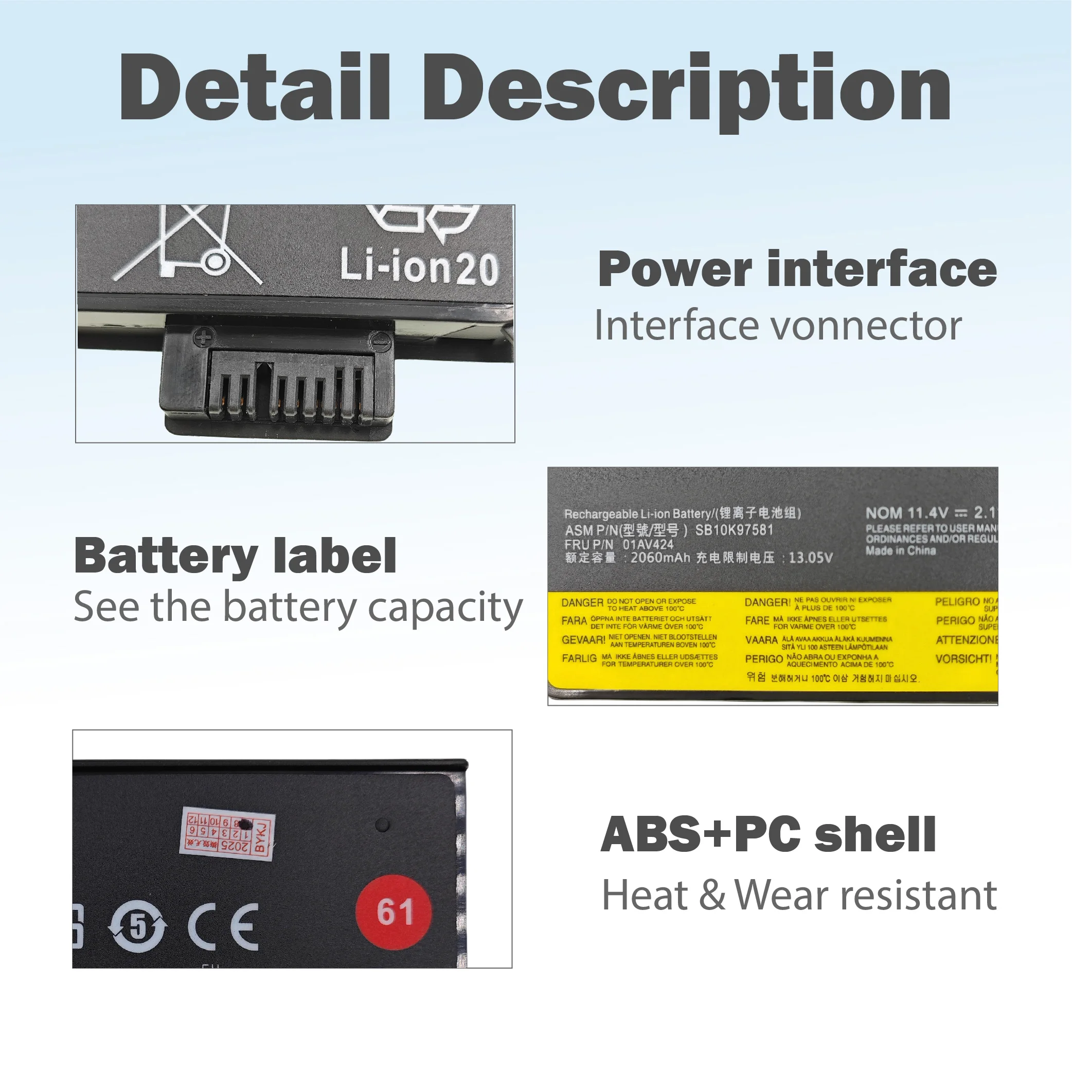 Batterie d'ordinateur portable 01AV424 61 pour Lenovo ThinkPad T470 T480 T570 T580 P51S P52S SB10K97581 SB10K97580 SB10K97597 01AV452 01AV423
