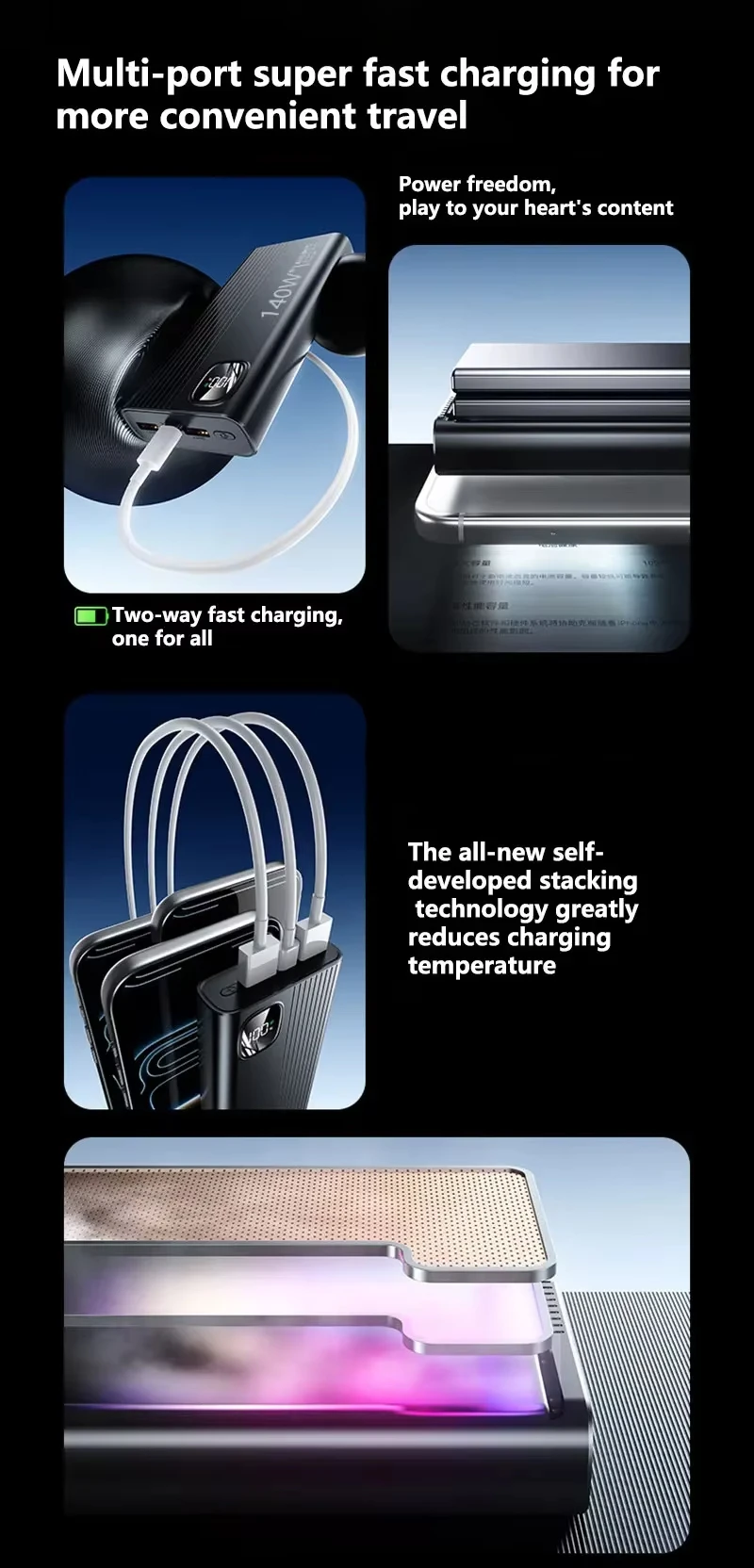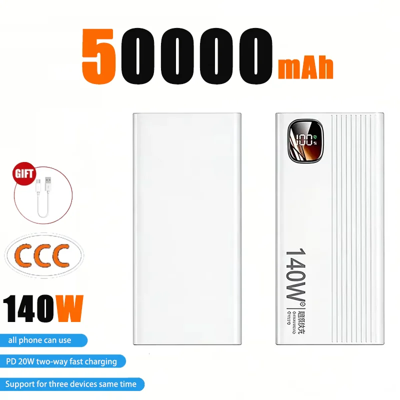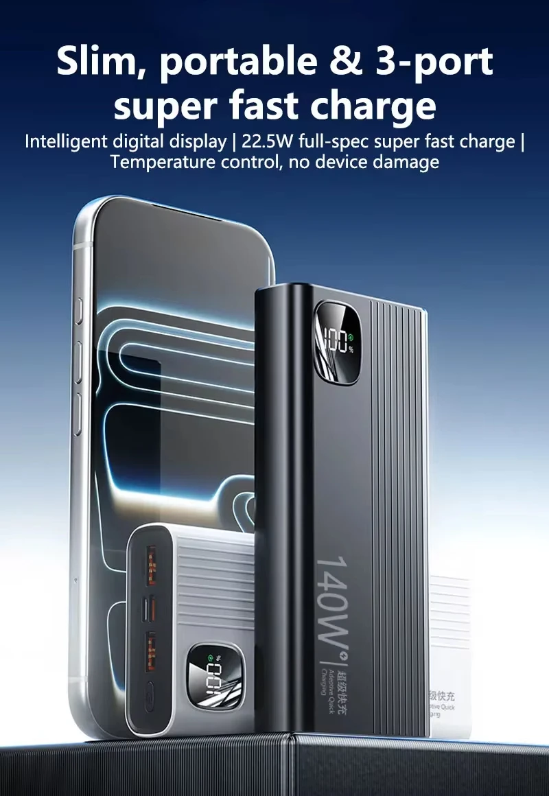 Batterie externe 500000mAh à charge ultra-rapide 140W – Chargeur portable pour iPhone, Huawei, Samsung, Xiaomi