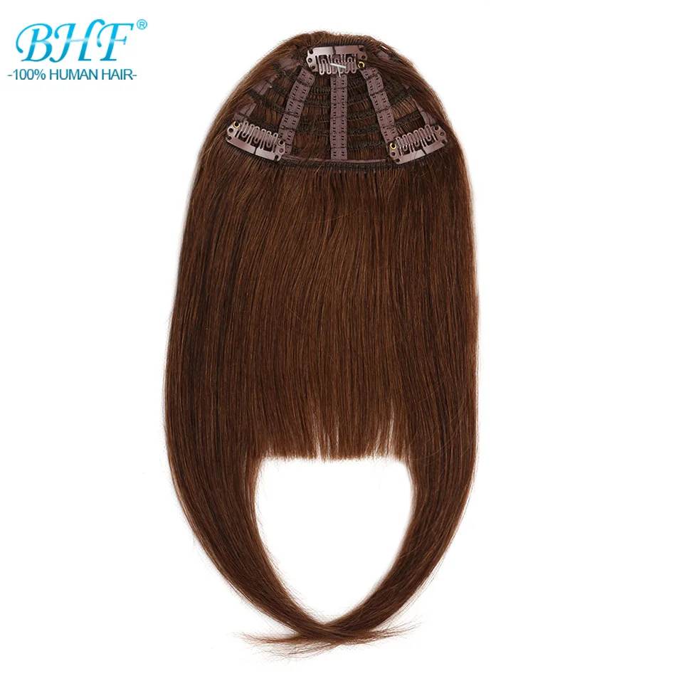 BHF-Frange de cheveux humains avec tempes, frange naturelle, 3 clips
