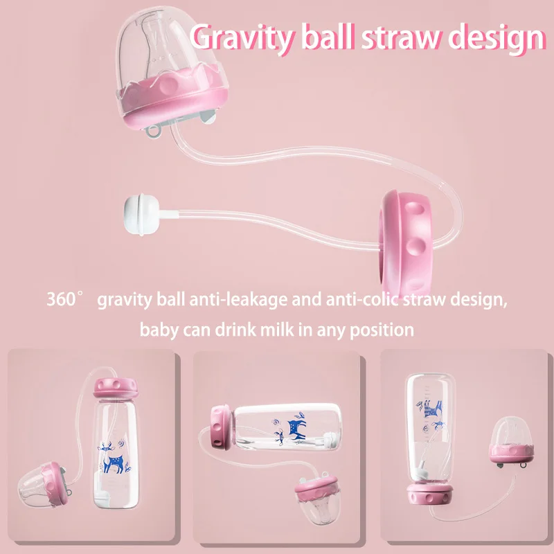 Biberons pour bébé en PP mains libres 240 ml 3M+, biberon de stockage de lait, sucette, biberon multifonction anti-chute avec boule de gravité, sans BPA