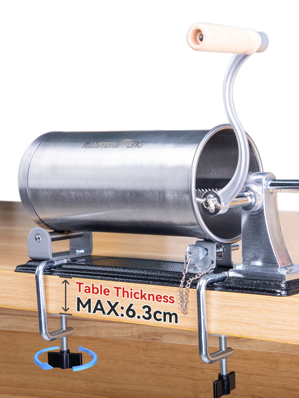 [CYLINDRE EN ACIER INOXYDABLE] Le cylindre de la saucisse horizontale MASTER FENG est fabriqué en acier inoxydable qui est sûr et durable pour les aliments.