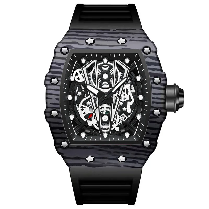 BINBOND-Montre-bracelet à quartz en silicone pour homme, miroir incurvé, surface creuse, marque dominatrice, sport, B8577