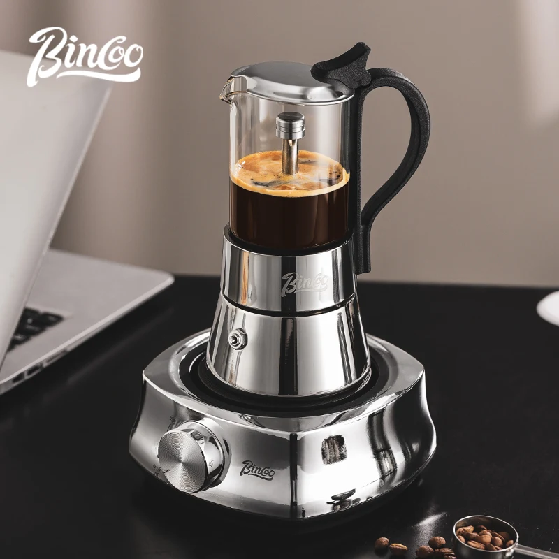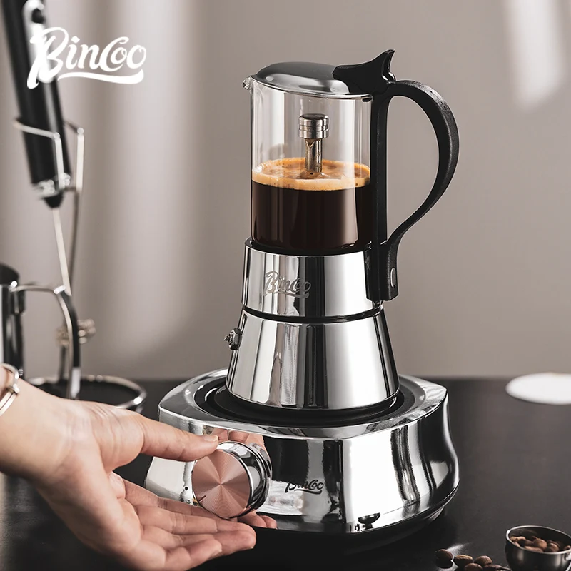 Bincoo-Cafetière Italienne à Extraction Concentrée, Poêle Électrique en Céramique, Base Chauffante, Verre Visuel, Double Valve, Moka, 220V