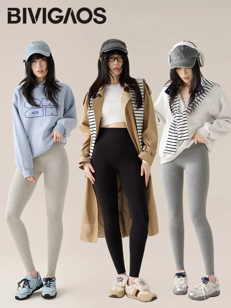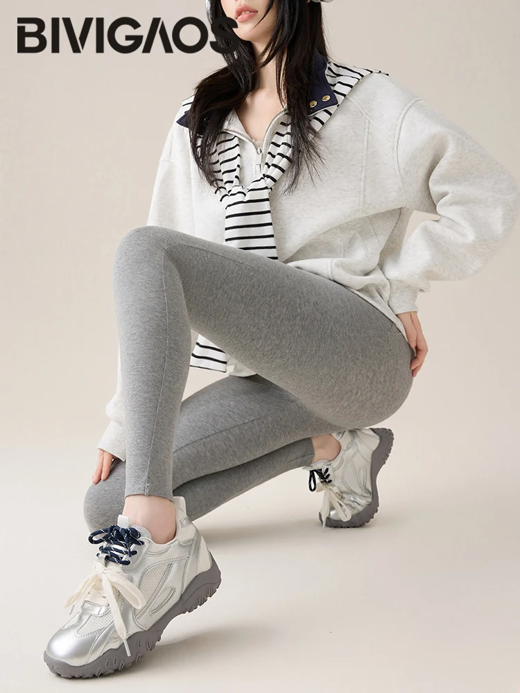 BIVIGAOS automne nouveau mince coton Leggings femmes taille haute sport Leggings décontractés 40 tissage tricot haute Stretch coton pantalon