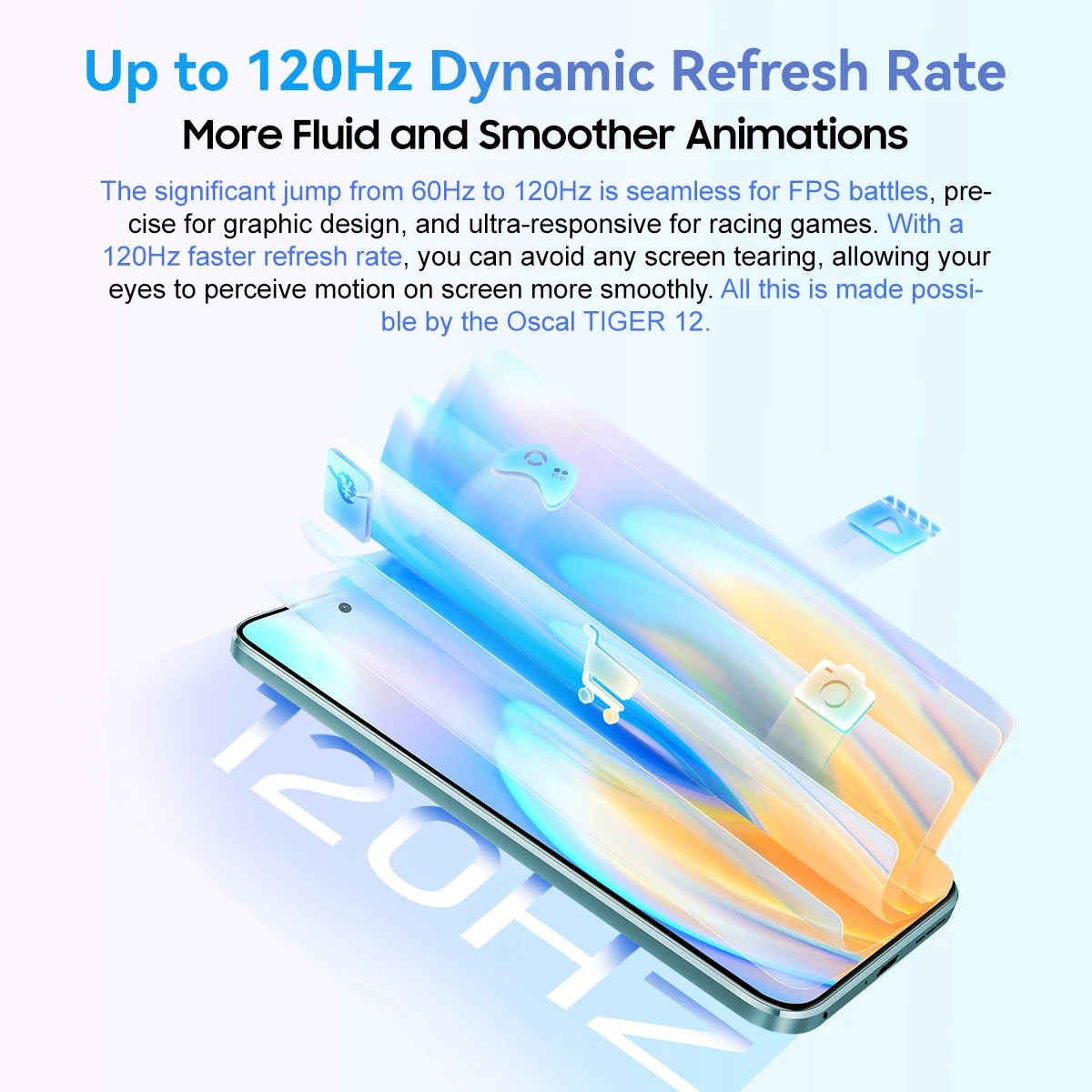 TIGER 12, équipé de la puce Helio G99 utilisant un processus efficace de 6 nm, offre des performances exceptionnelles dans les jeux gourmands sur CPU tout en maintenant une efficacité énergétique élevée pour prolonger la durée de vie de la batterie.Grâce au support du puissant Arm Mali-G57, Oscal TIGER 12 peut accélérer encore le traitement graphique pour maximiser les performances pour les tâches quotidiennes.
