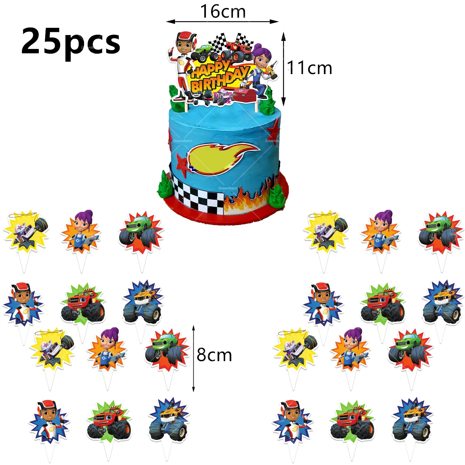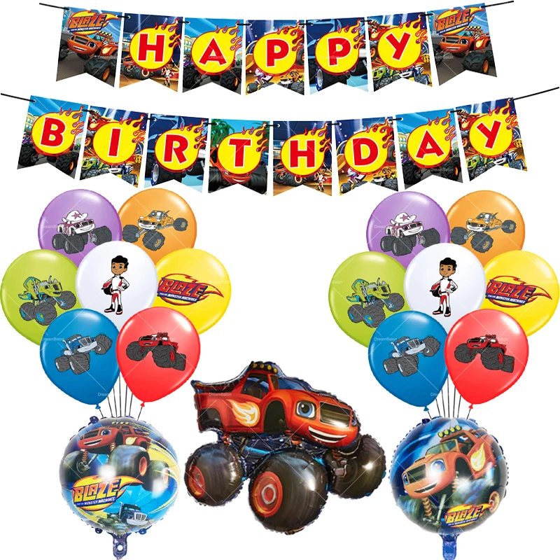 Liste des paquets : 1 ensemble de bannière joyeux anniversaire, 1 grande décoration de gâteau, 12 décorations pour cupcakes. Ballons en latex 14 pièces, Ballons en aluminium 3 pièces.
