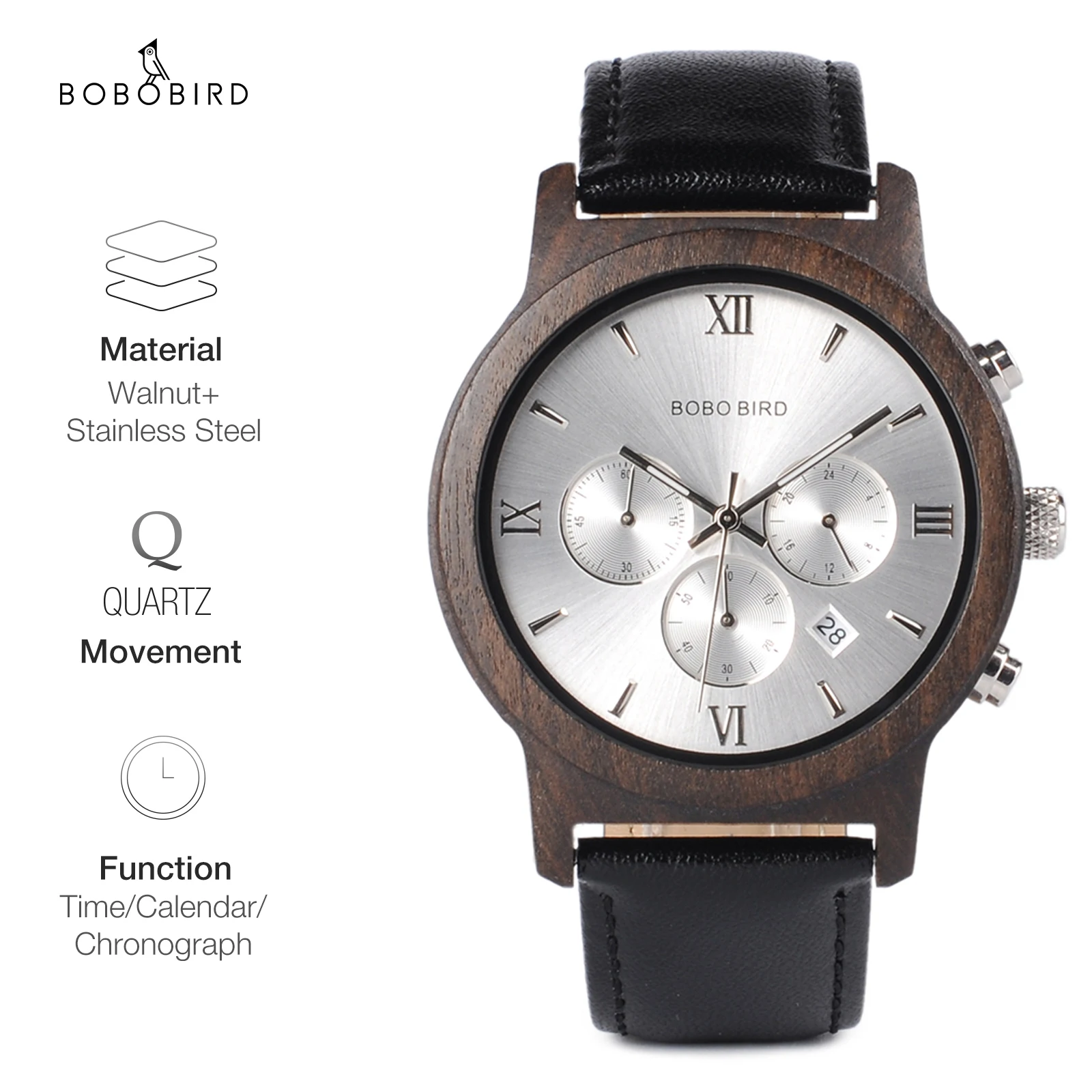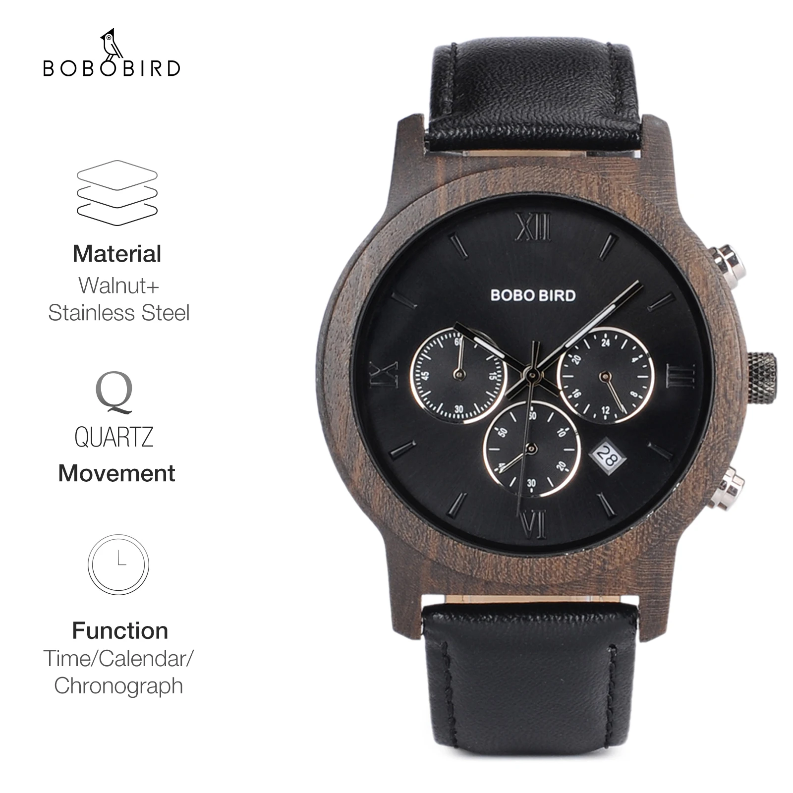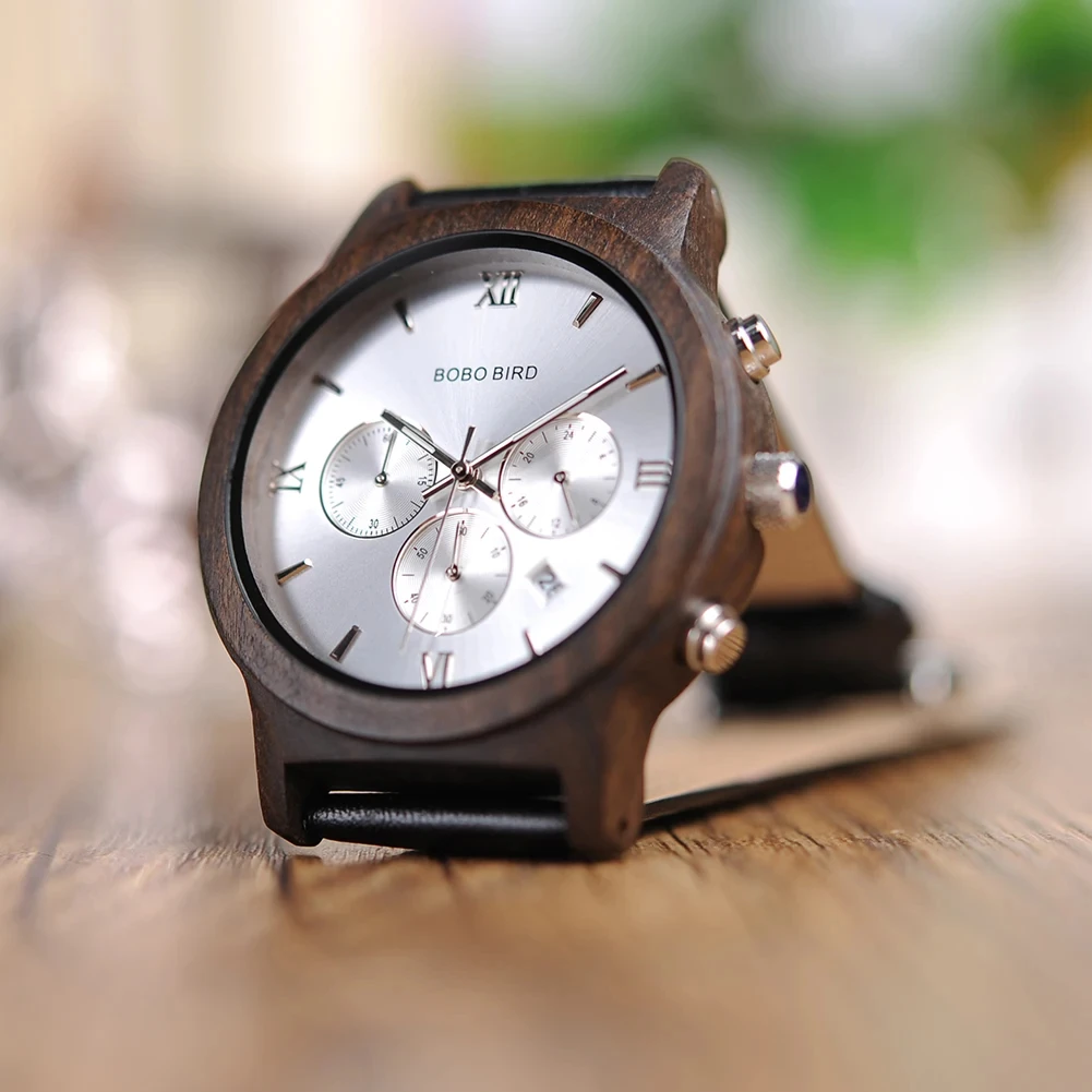 BOBO BIRD-Montre-bracelet à quartz en bois pour homme, horloge Shoous, bracelet en cuir, nouveau design, grande boîte cadeau, mode